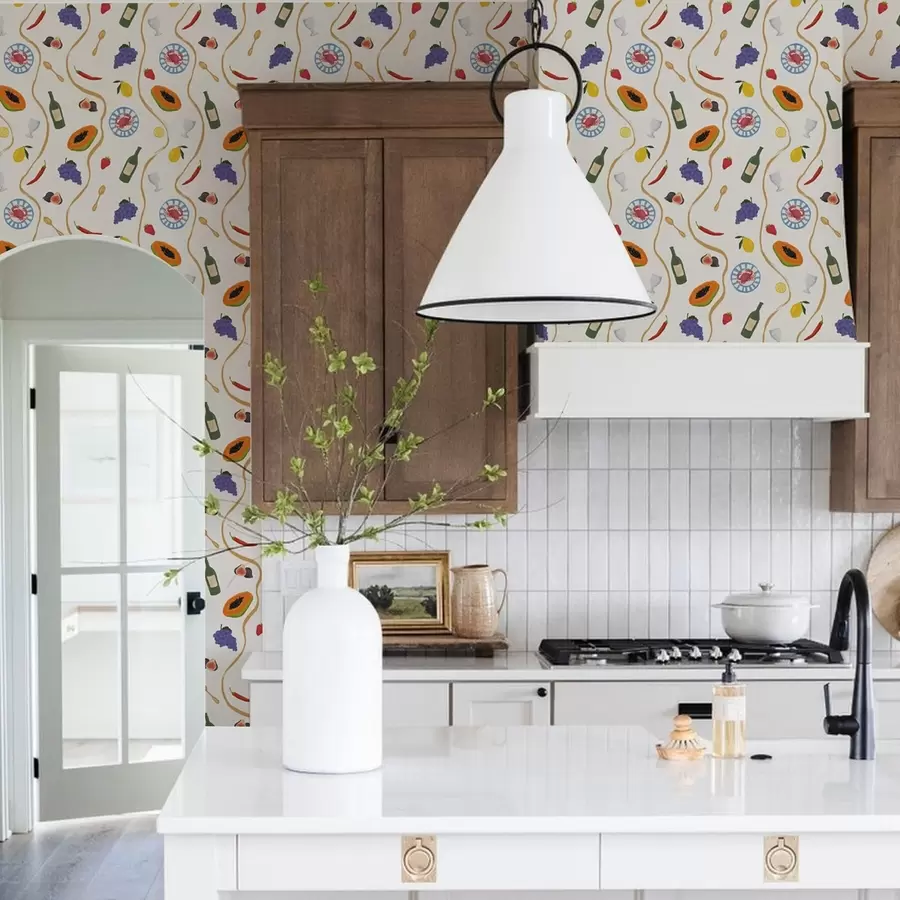 Behang Fruit, wijn en kruiden op een lichte achtergrond