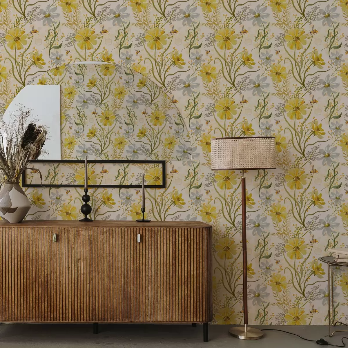 Behang Heldere bloemencompositie in gele kleur Nr. a00045