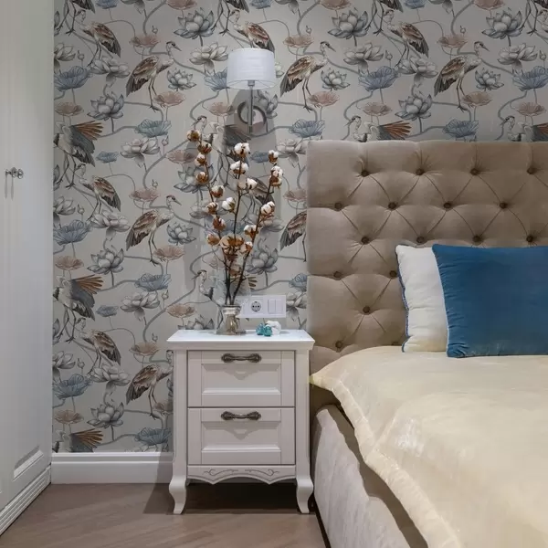 Behang Compositie met kraanvogels en lotussen in pastelkleuren Nr. a00064