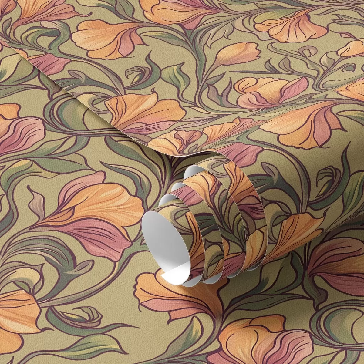 Behang Heldere gedraaide stelen met bladeren en bloemen Nr. a00074