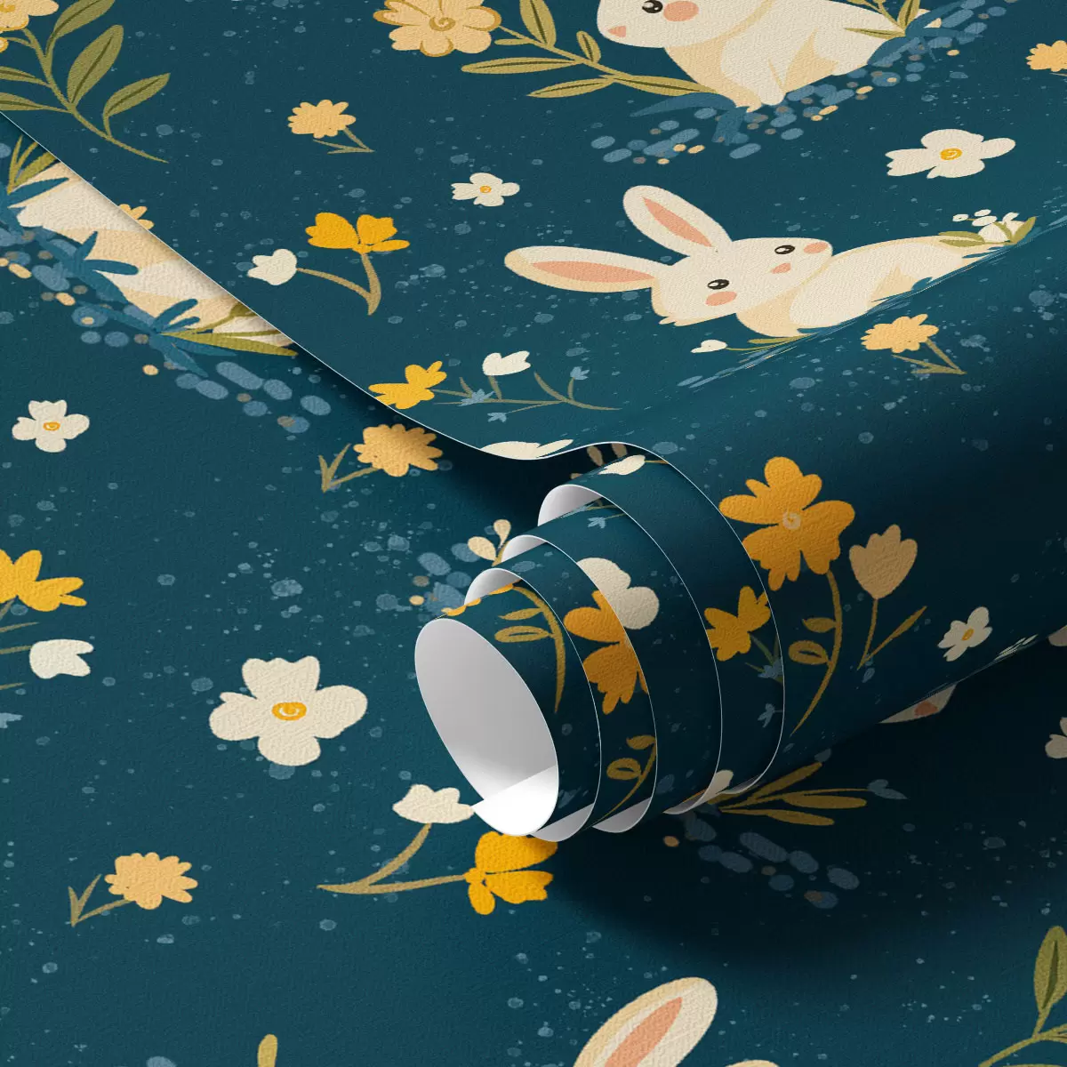 Behang Konijnen in gras en bloemen op donkere achtergrond Nr. a00080