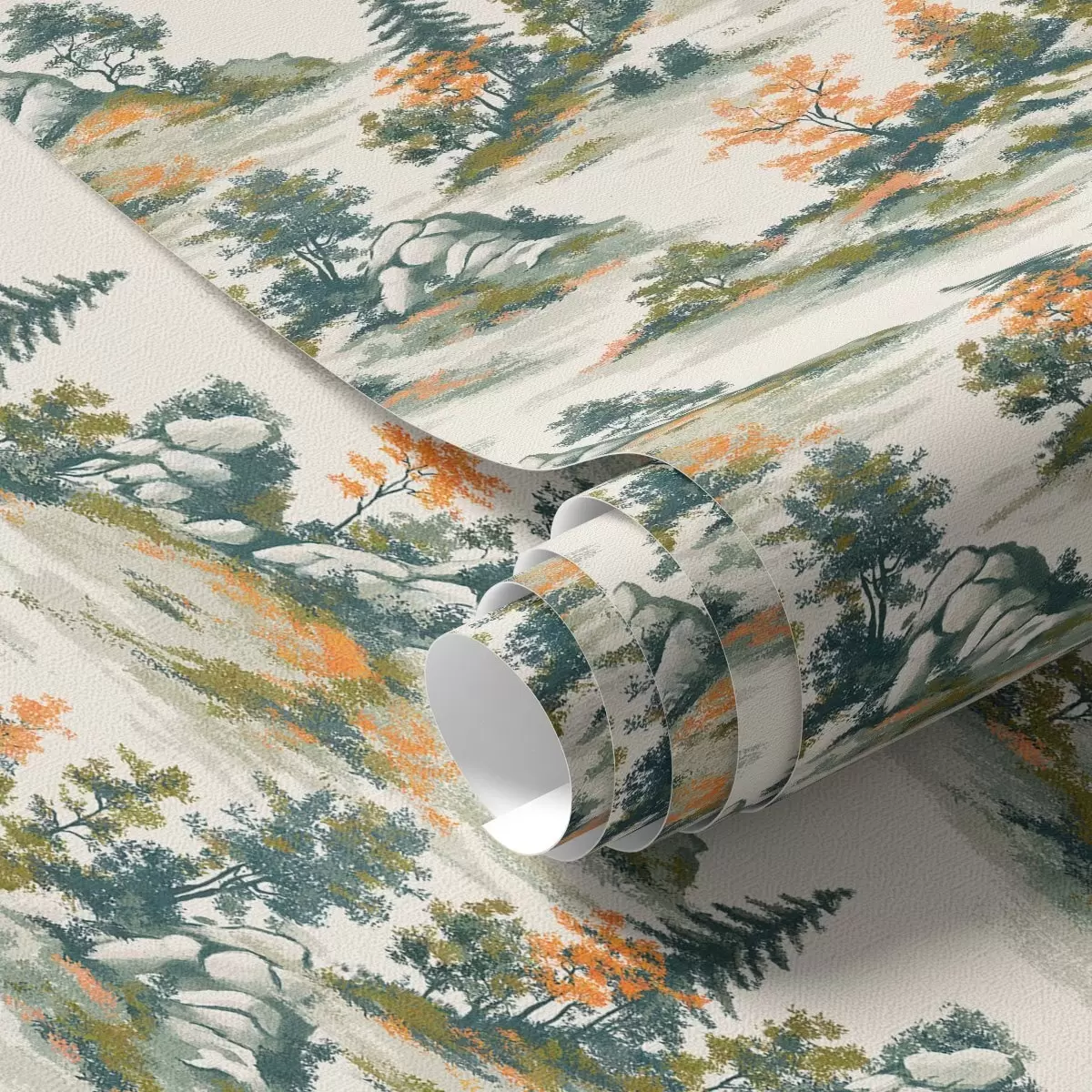 Behang Bomen op bergachtige richels met stenen Nr. a00090