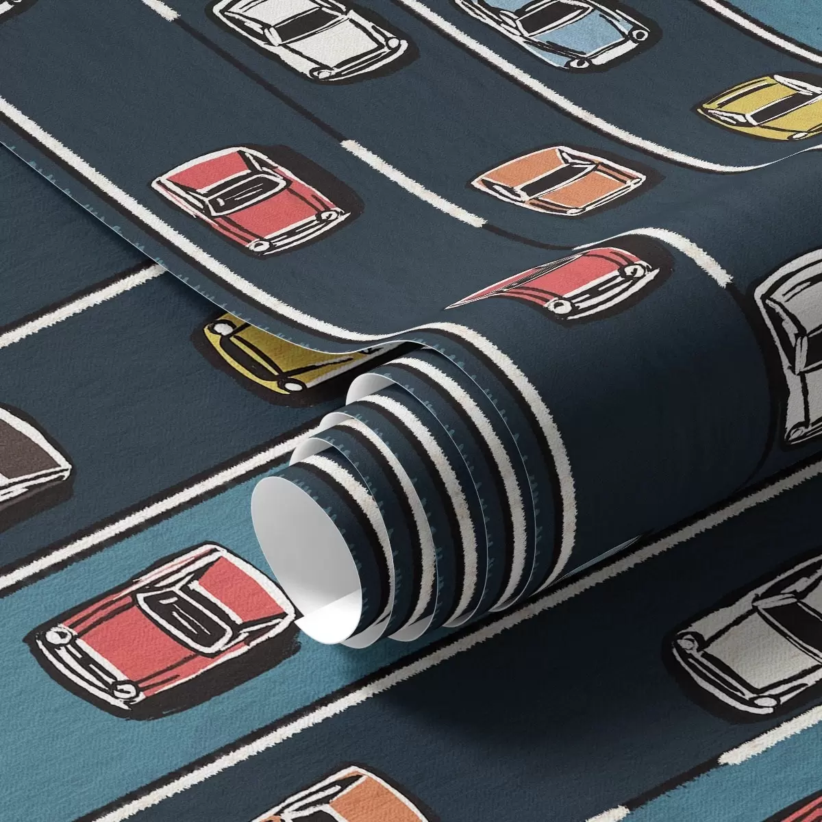 Behang Retro auto op marineblauwe weg in jaren '60 stijl Nr. a00118