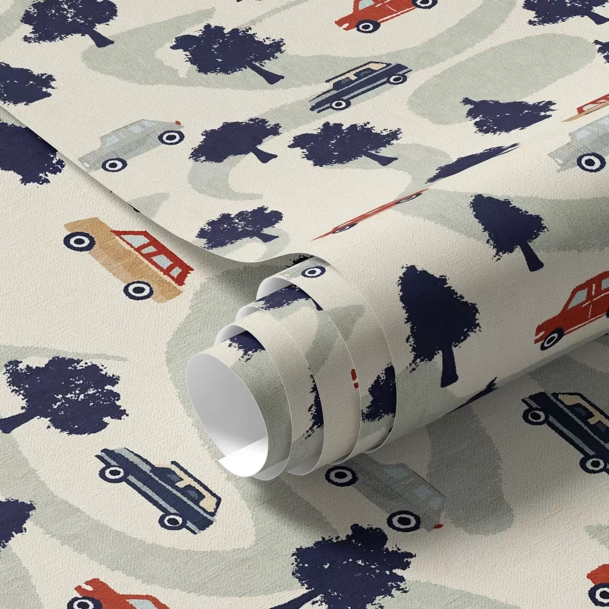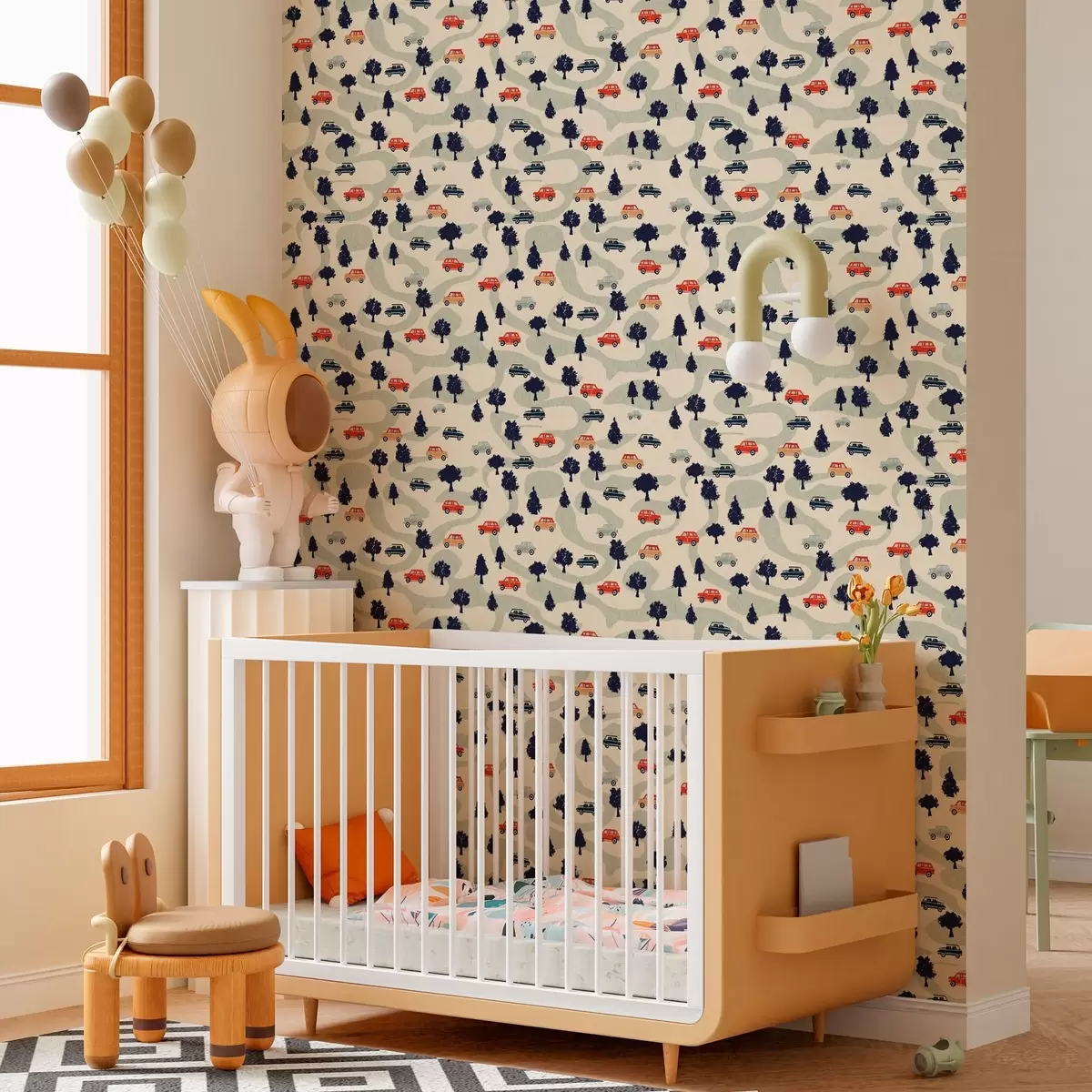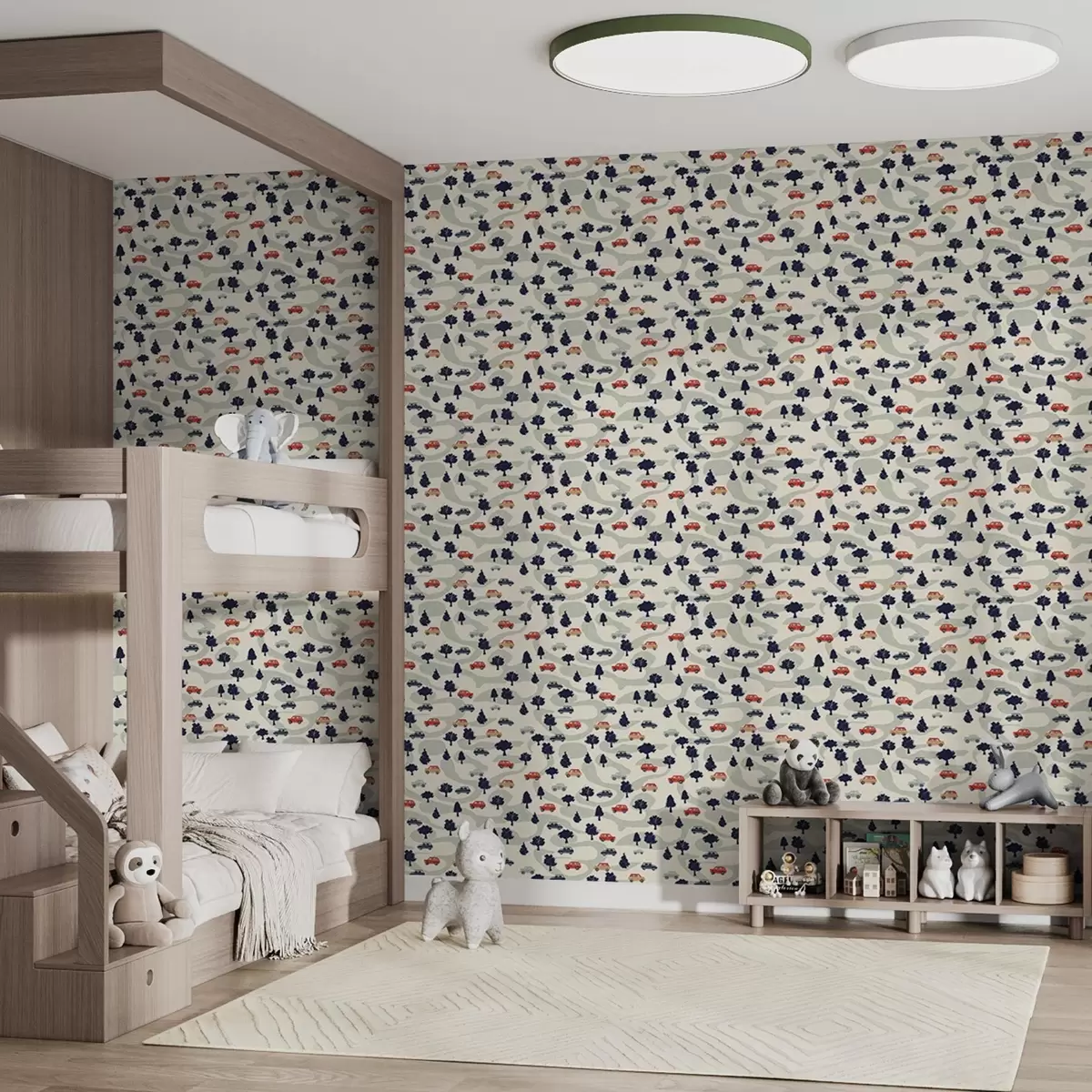 Behang Grappige auto's tussen de bomen op een crèmekleurige achtergrond Nr. a00119