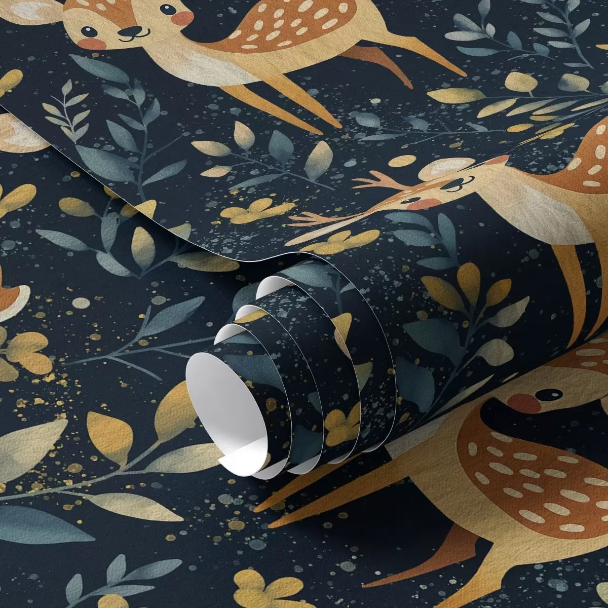 Behang Reekalf in een donker bos met gele bladeren Nr. a00124