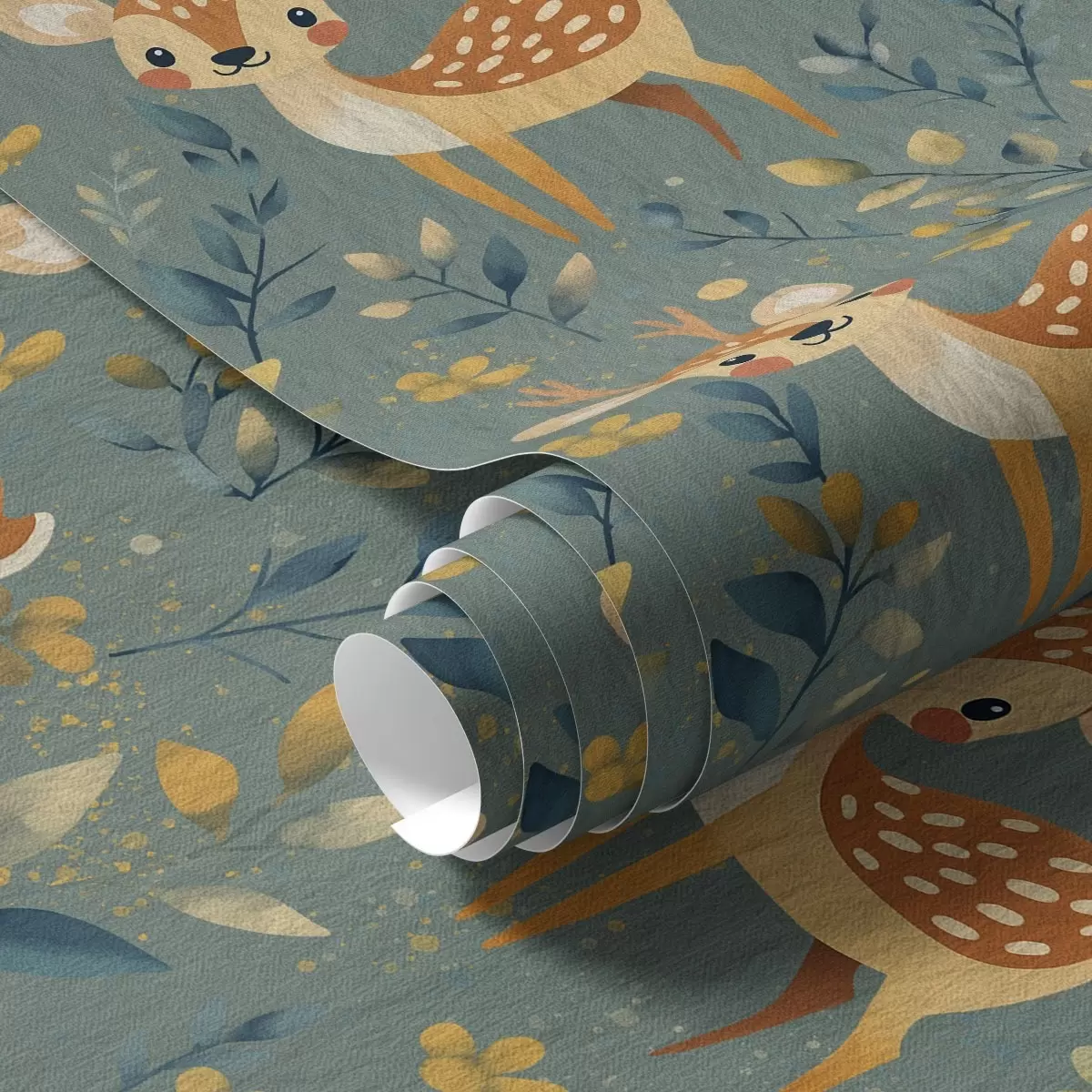Behang Babyhert in het bos met gele bladeren Nr. a00124v1