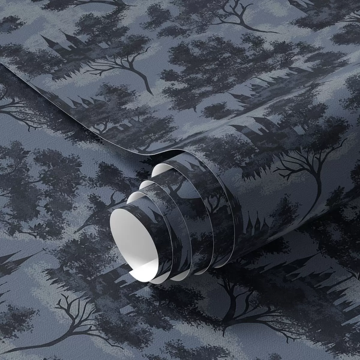 Behang Gotische kastelen tussen de bomen in het nachtbos Nr. a00130v1