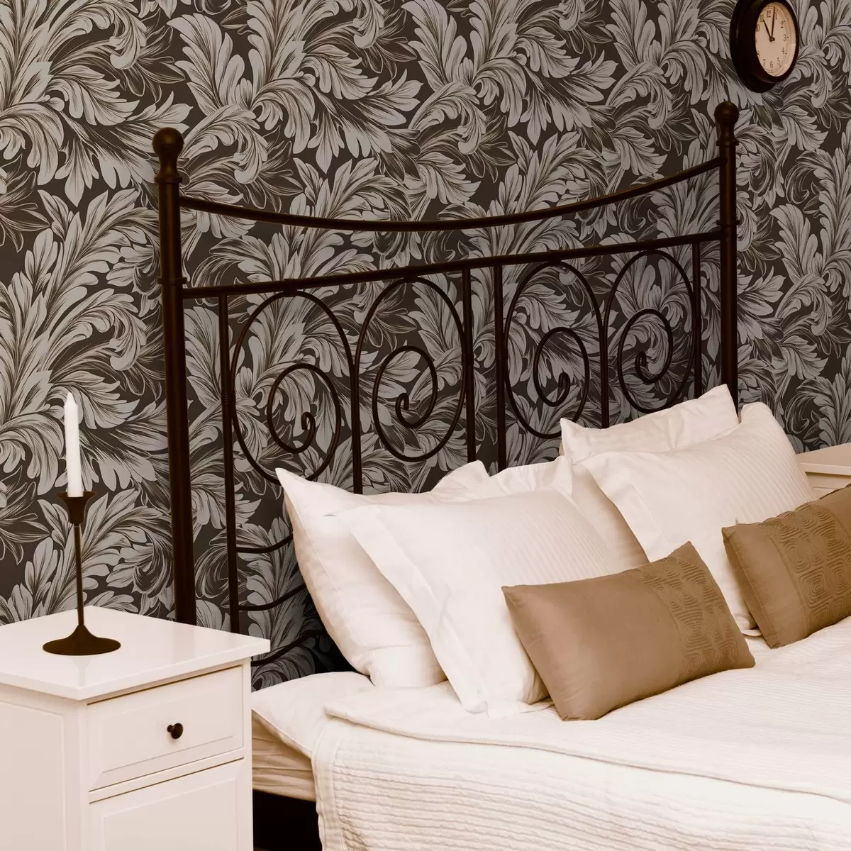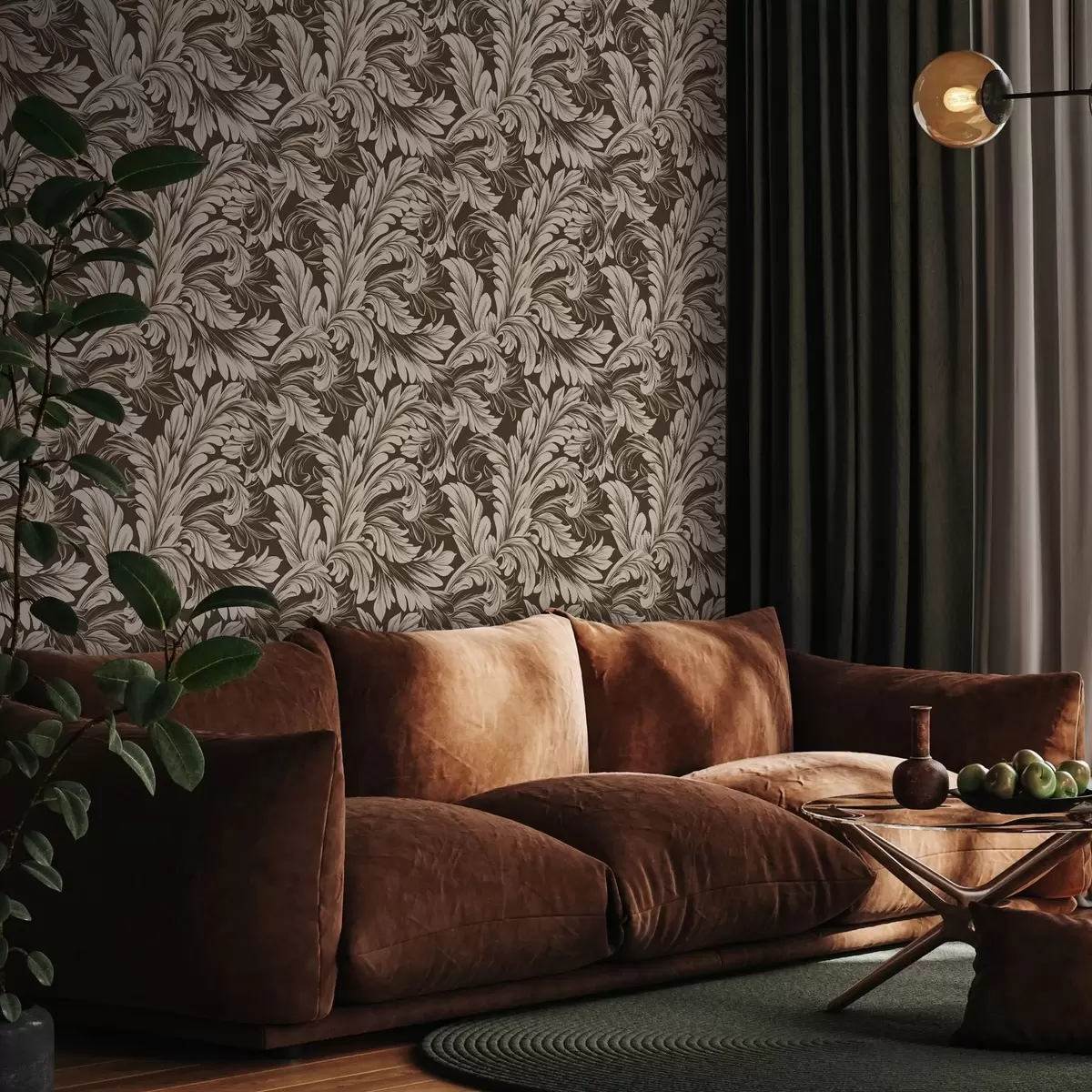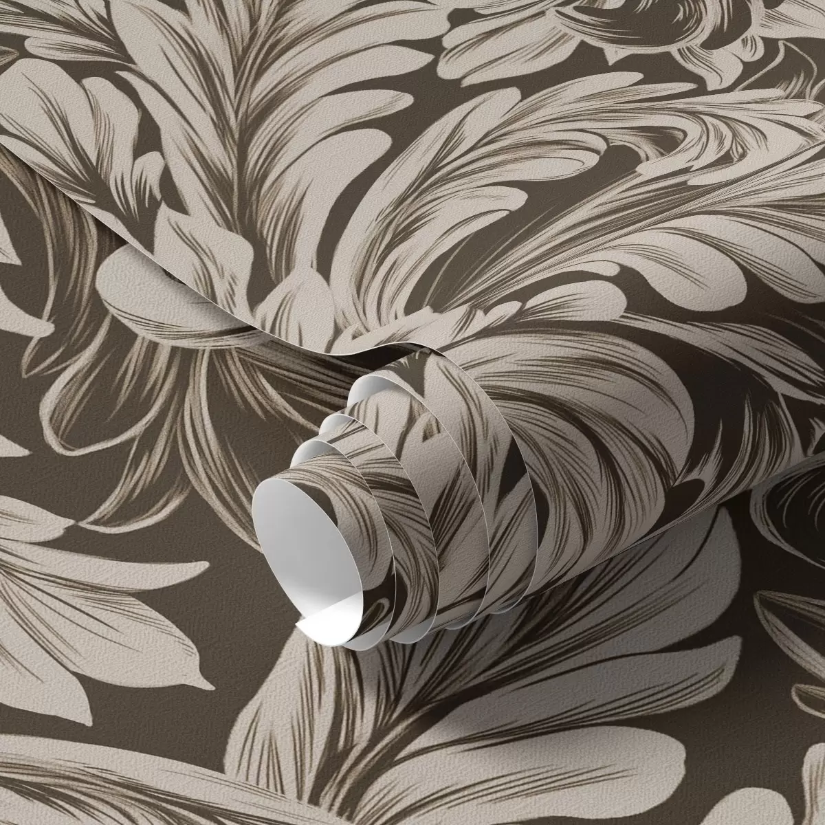 Behang Barok patroon met bladeren op een donkere achtergrond Nr. a00135v5