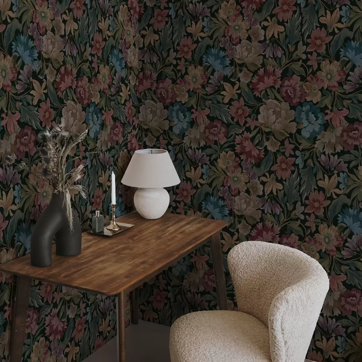 Behang Wandtapijttextuur met kleurrijke bloemen a00146
