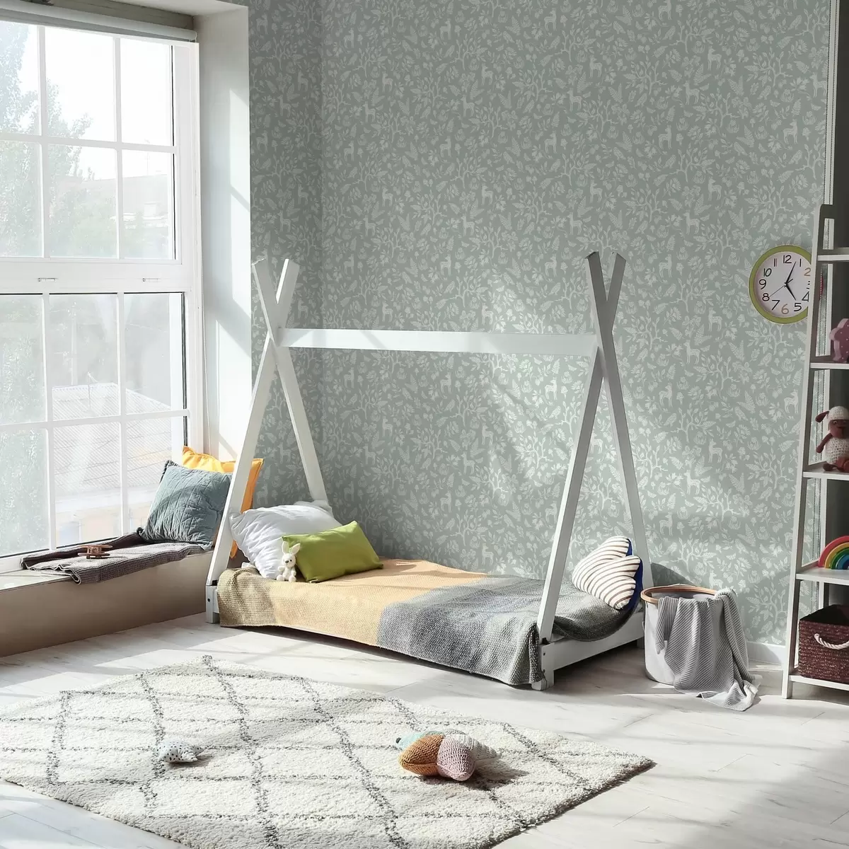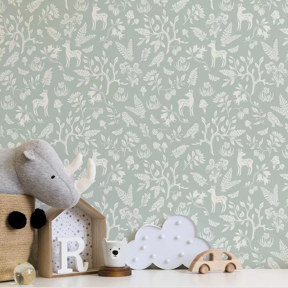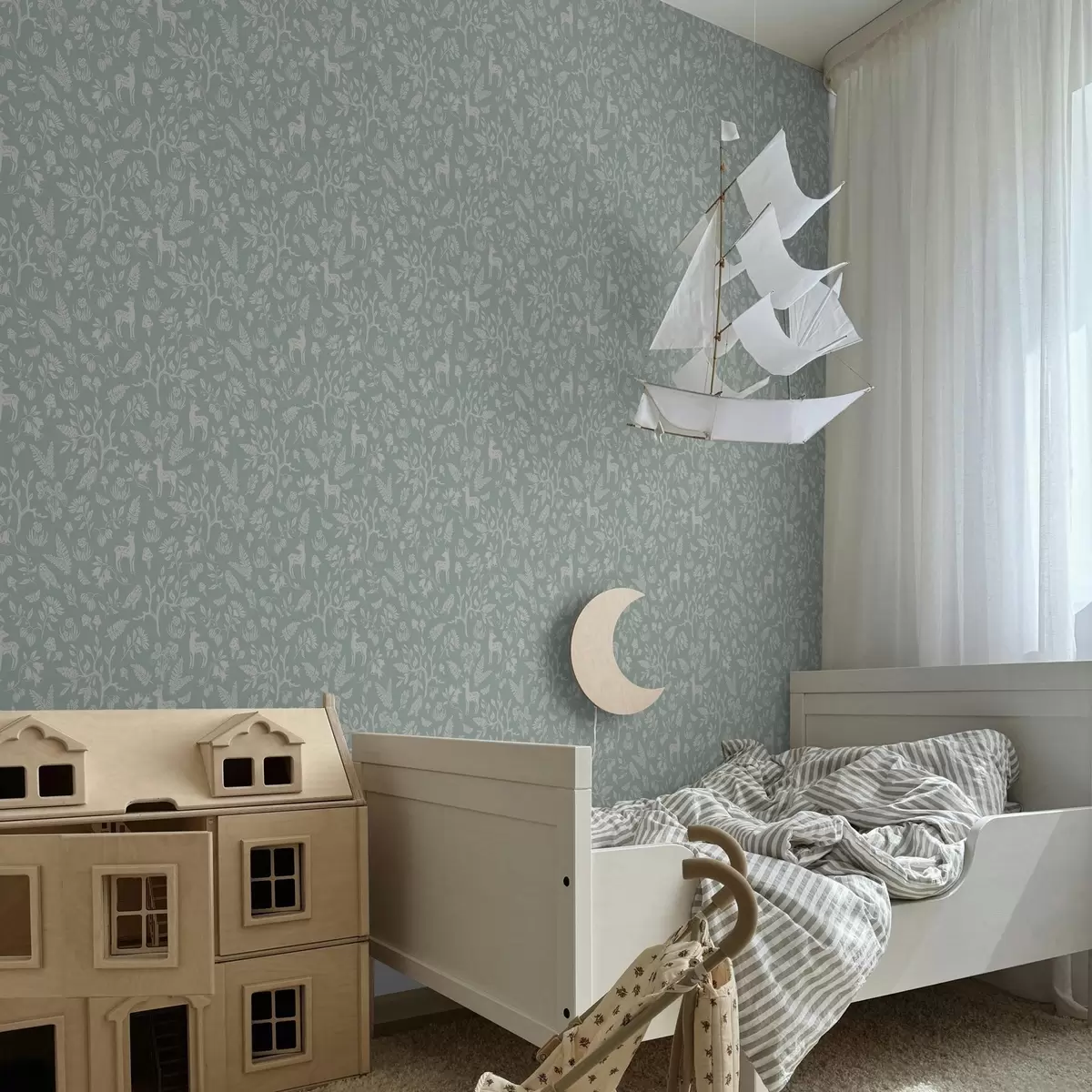 Behang Scandinavische dieren en planten op een mint achtergrond Nr. a00149