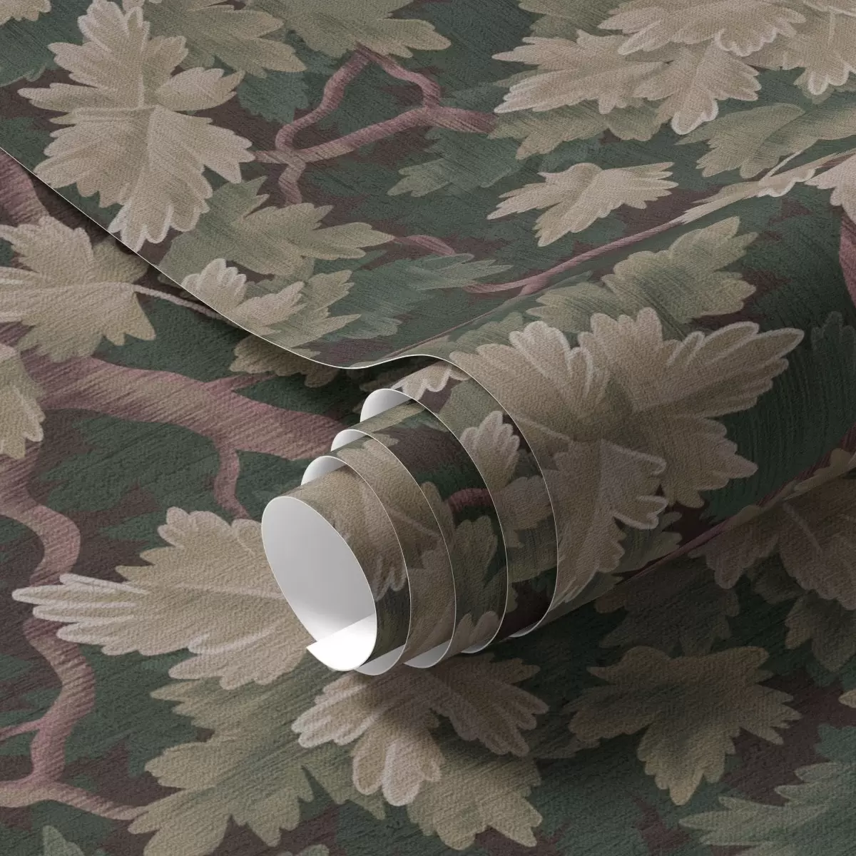 Behang Bladeren in warm palet op donkere achtergrond Nr. a00151v1