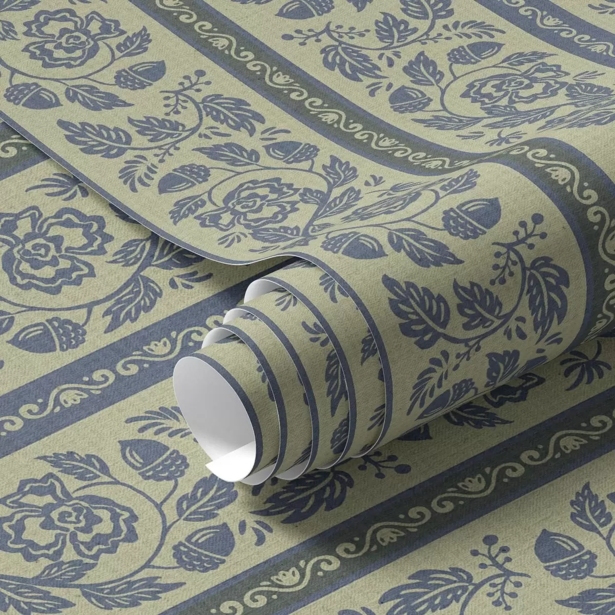 Behang Vintage blauw ornament met bloemen en eikels Nr. a00181v1