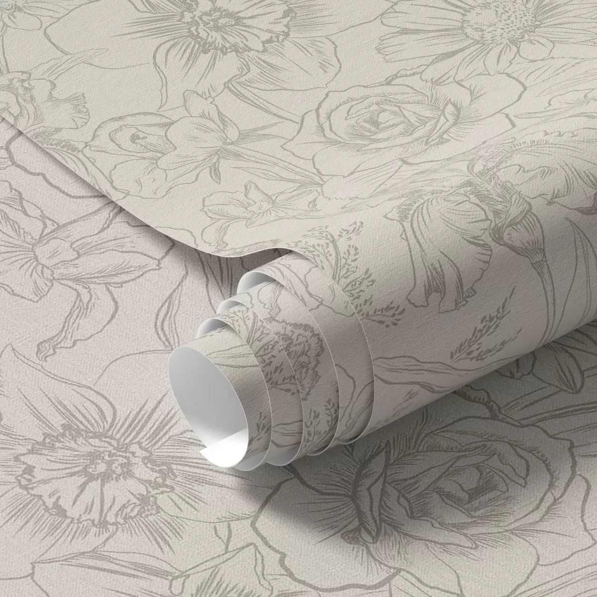 Behang Contourbloemen op een crèmekleurige achtergrond, delicaat bloemenpatroon Nr. a00218