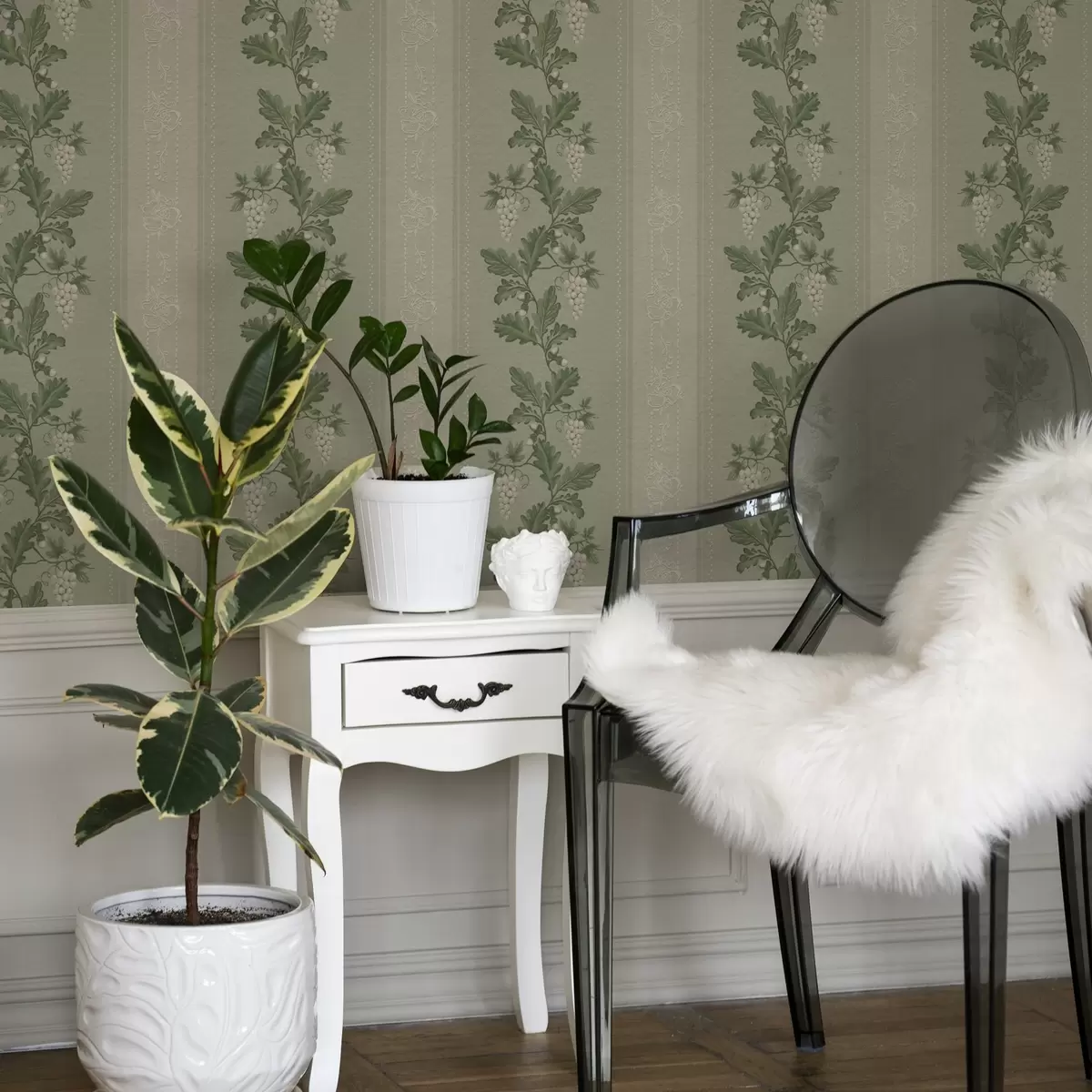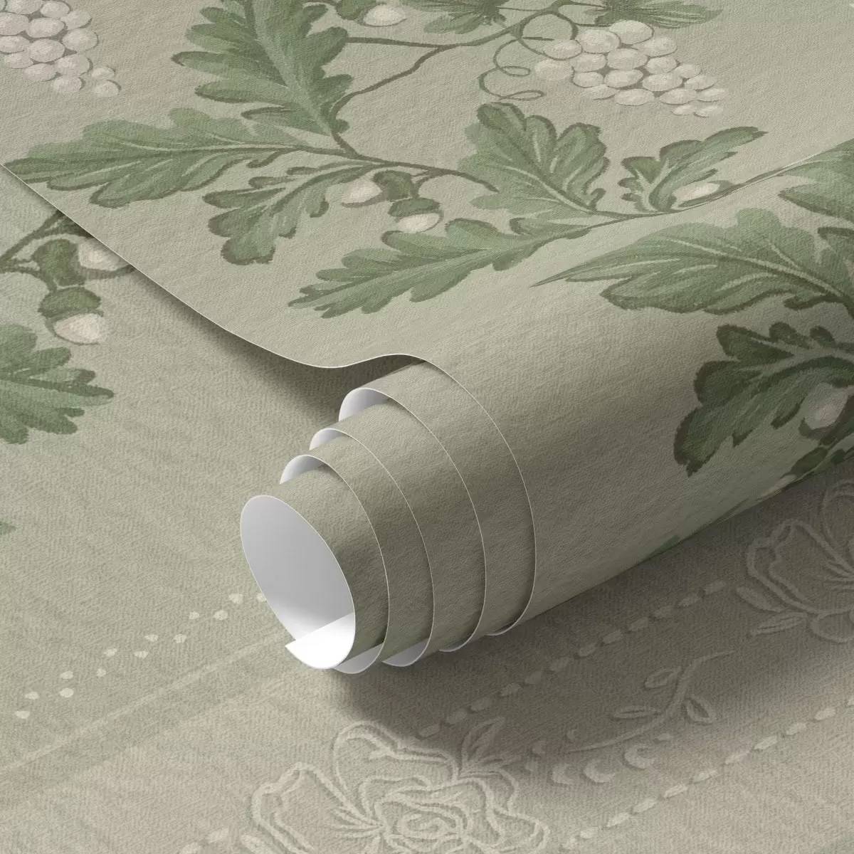Behang Druiventrossen en kant, groen klassiek patroon Nr. a00223