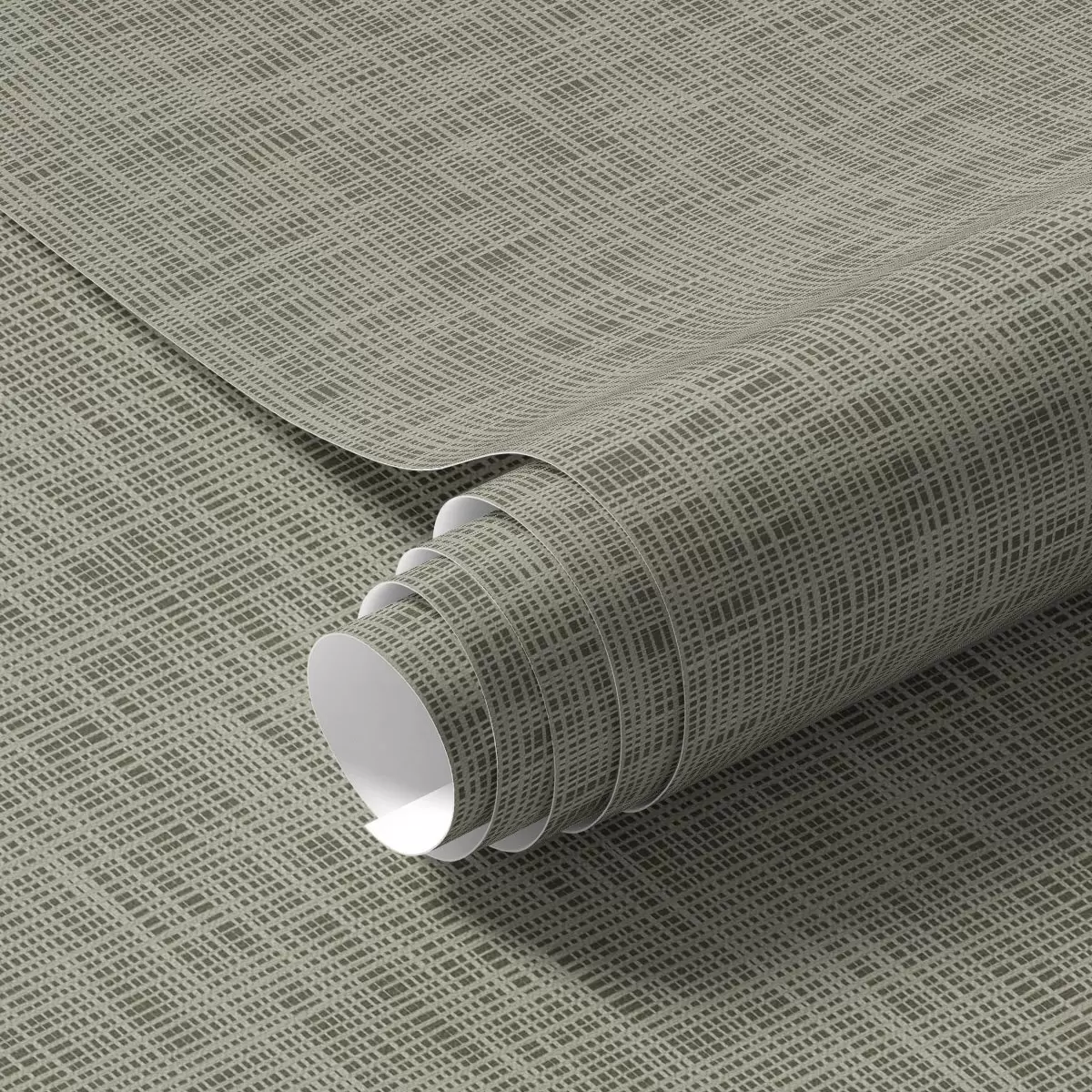 Behang Grijsgroene stoftextuur, linnen rasterpatroon Nr. a00235