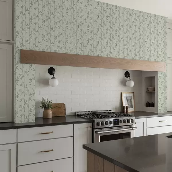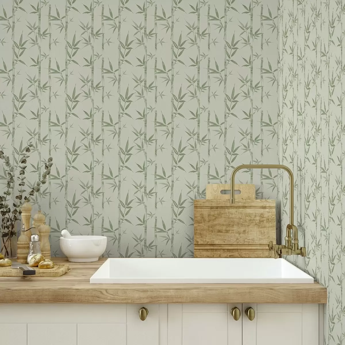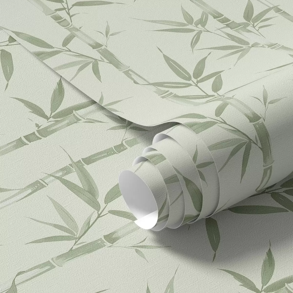 Behang Lichtgroene bamboe op zachte pastelachtergrond Nr. a00236v1