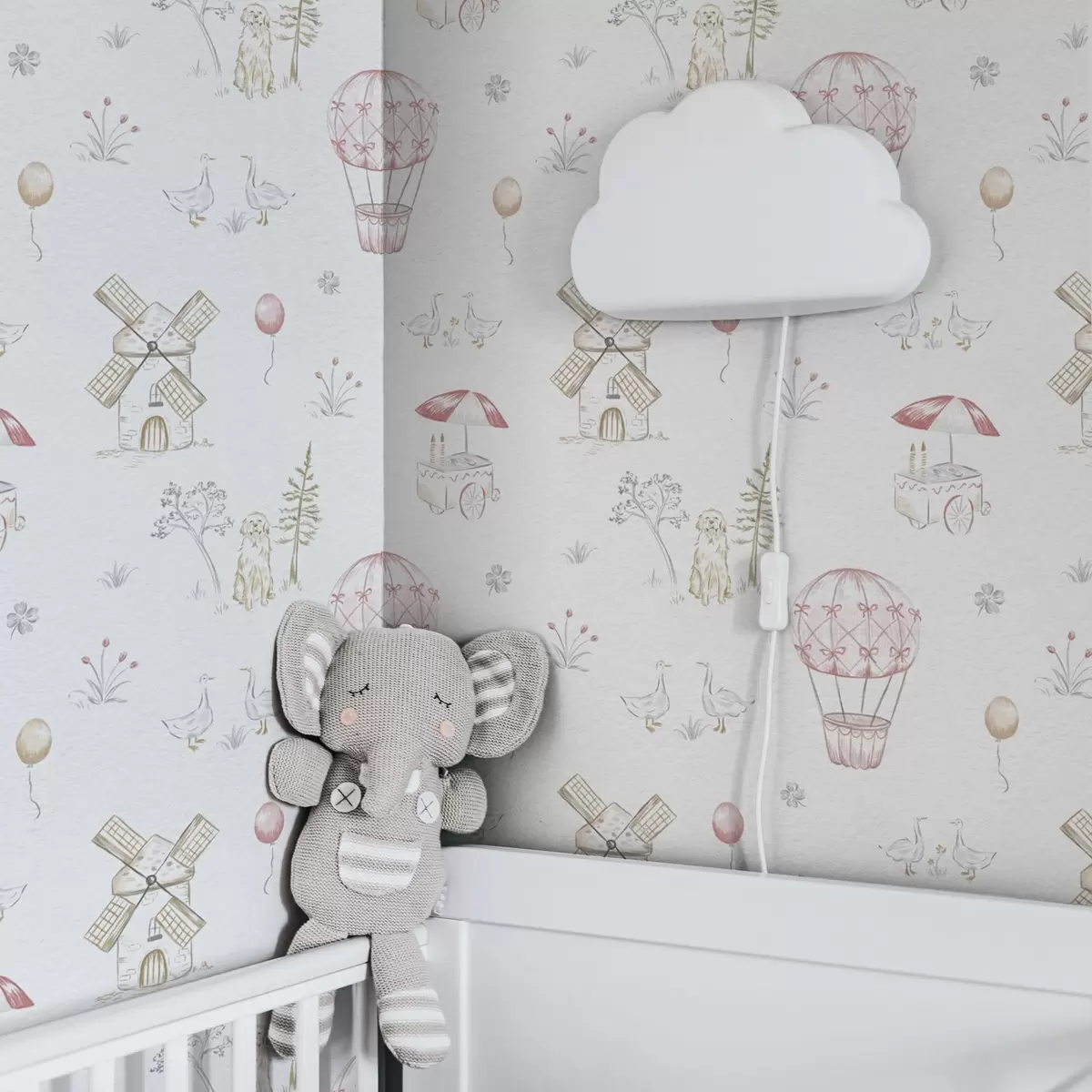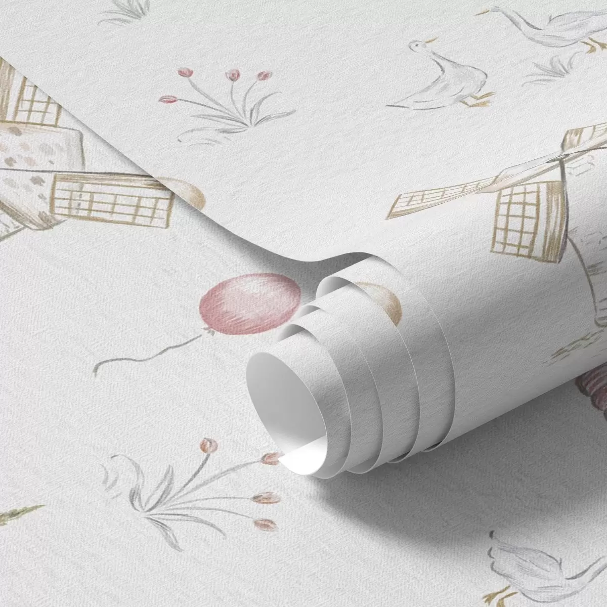 Behang Illustraties voor kinderen: Hond, eenden, ballen, molen Nr. a00278