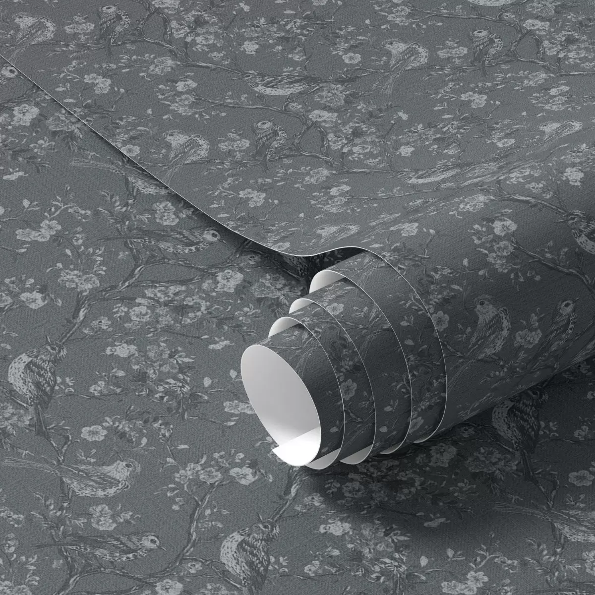 Behang Donker patroon met vogels en bloemen, klassieke stijl Nr. a00281