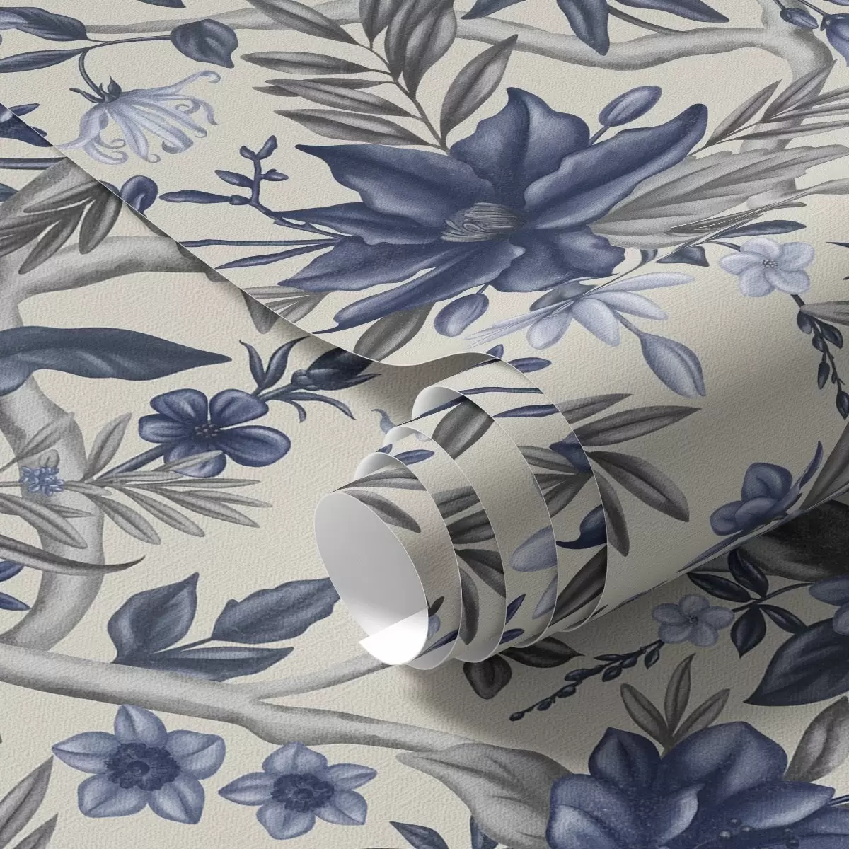 Behang Blauwe en grijze bloemen op een lichte achtergrond Nr. a00304
