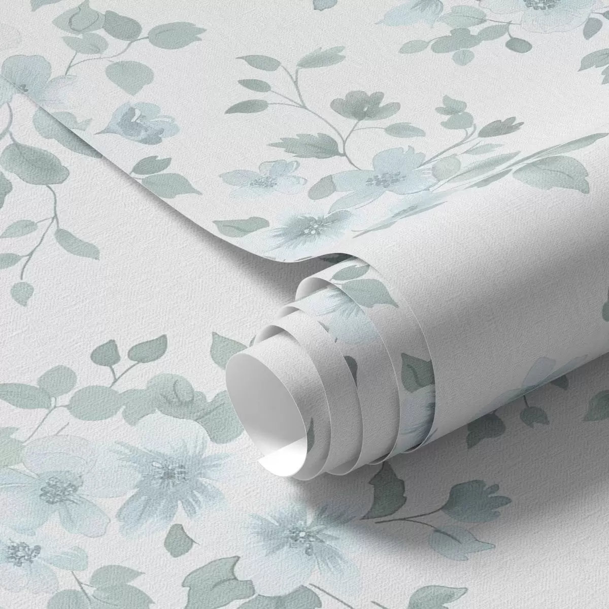 Behang Lichtblauwe bloemen op een witte achtergrond, aquarelstijl Nr. a00364