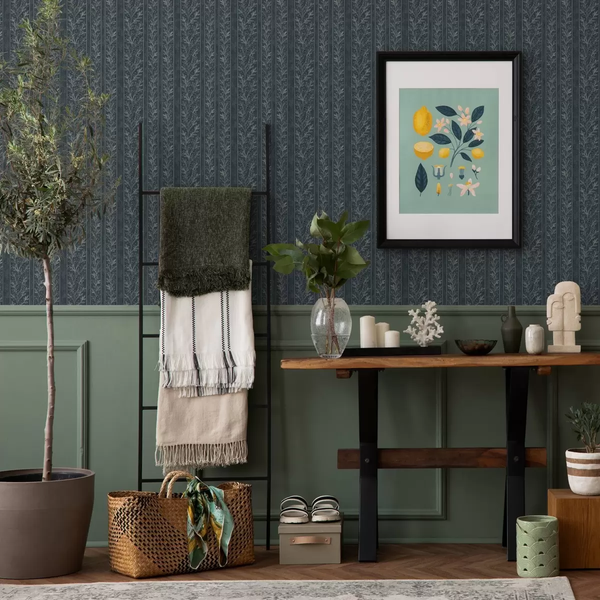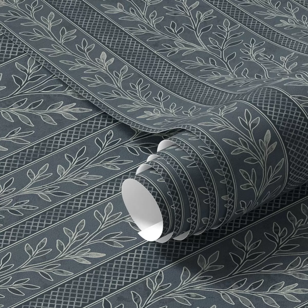 Behang Gestreept patroon met takjes op een blauwe achtergrond Nr. a00425