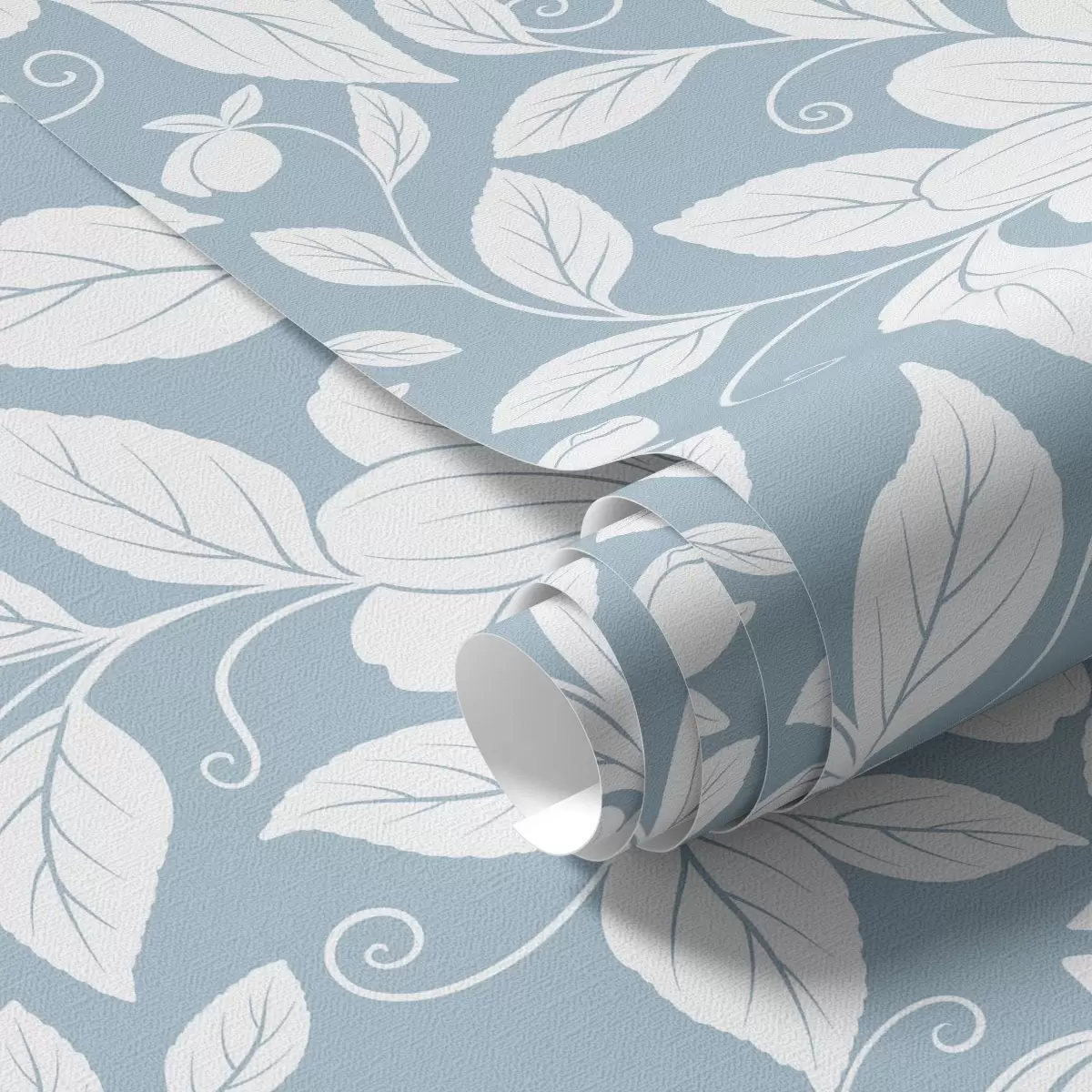 Behang Witte bloemmotieven op pastelblauwe achtergrond Nr. a00452