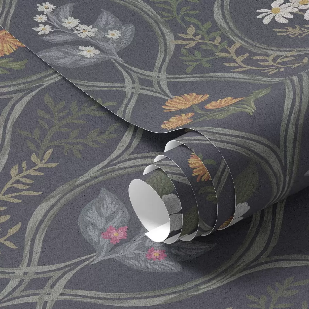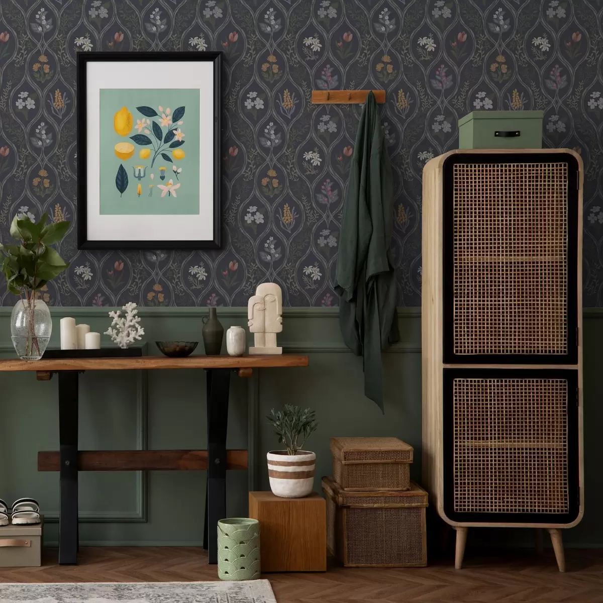 Behang Donker vintage frame met kleurrijke tuinbloemen Nr. a00454