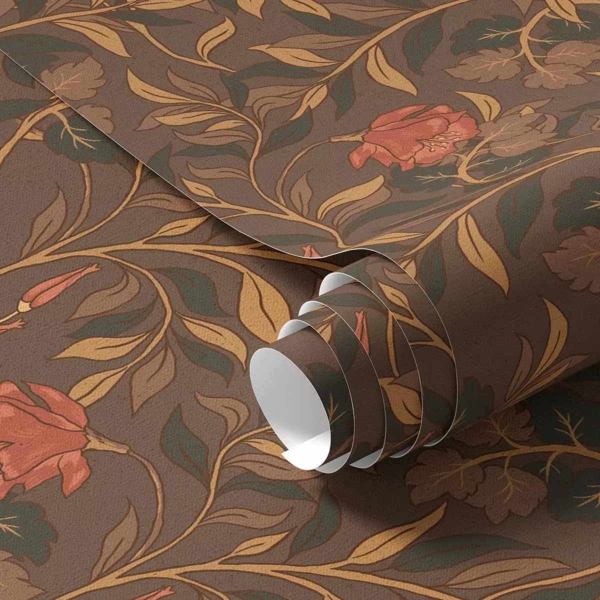 Behang Bloeiende terracotta takken op een bruine achtergrond Nr. a00460