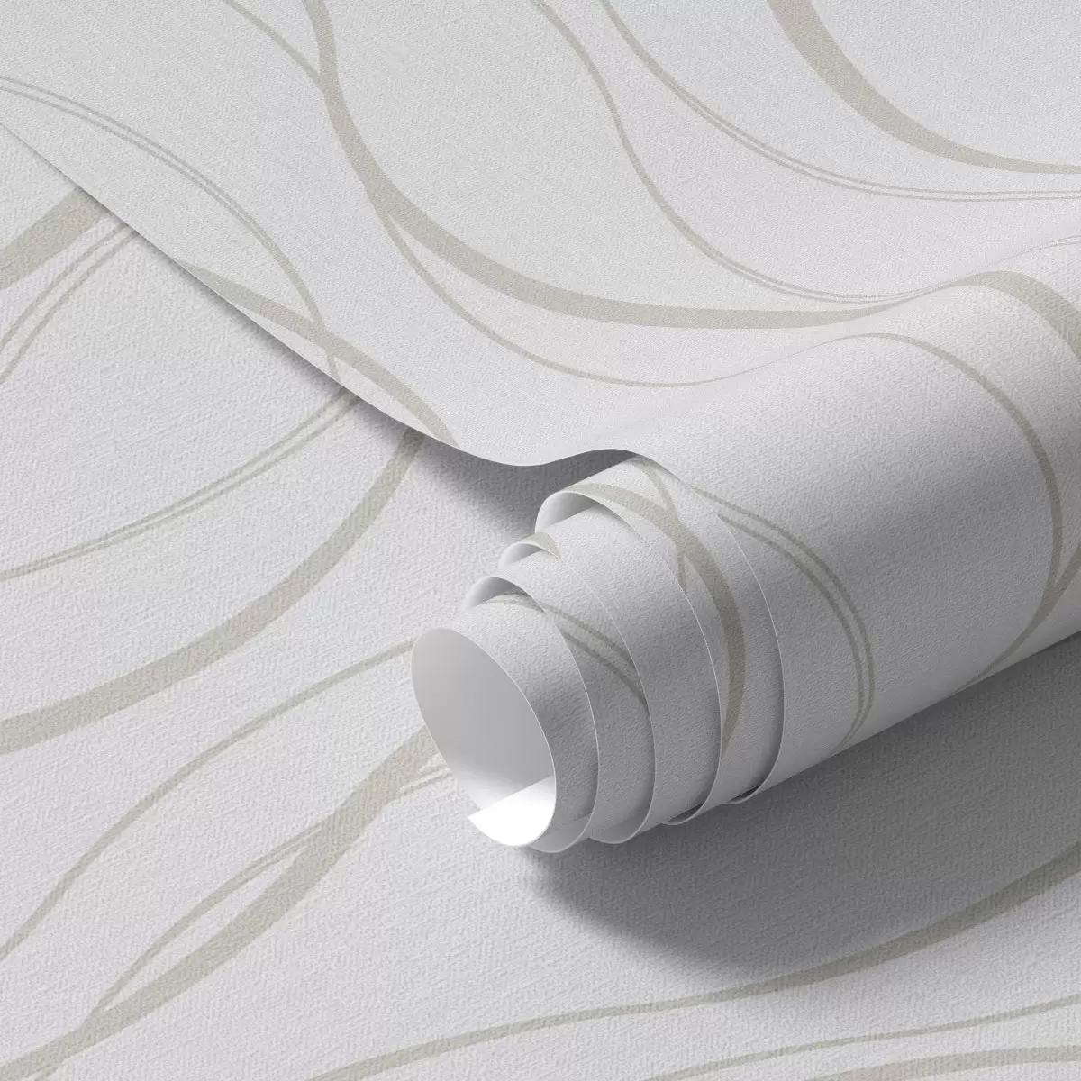 Behang Abstracte golvende beige lijnen op een witte achtergrond Nr. a00480