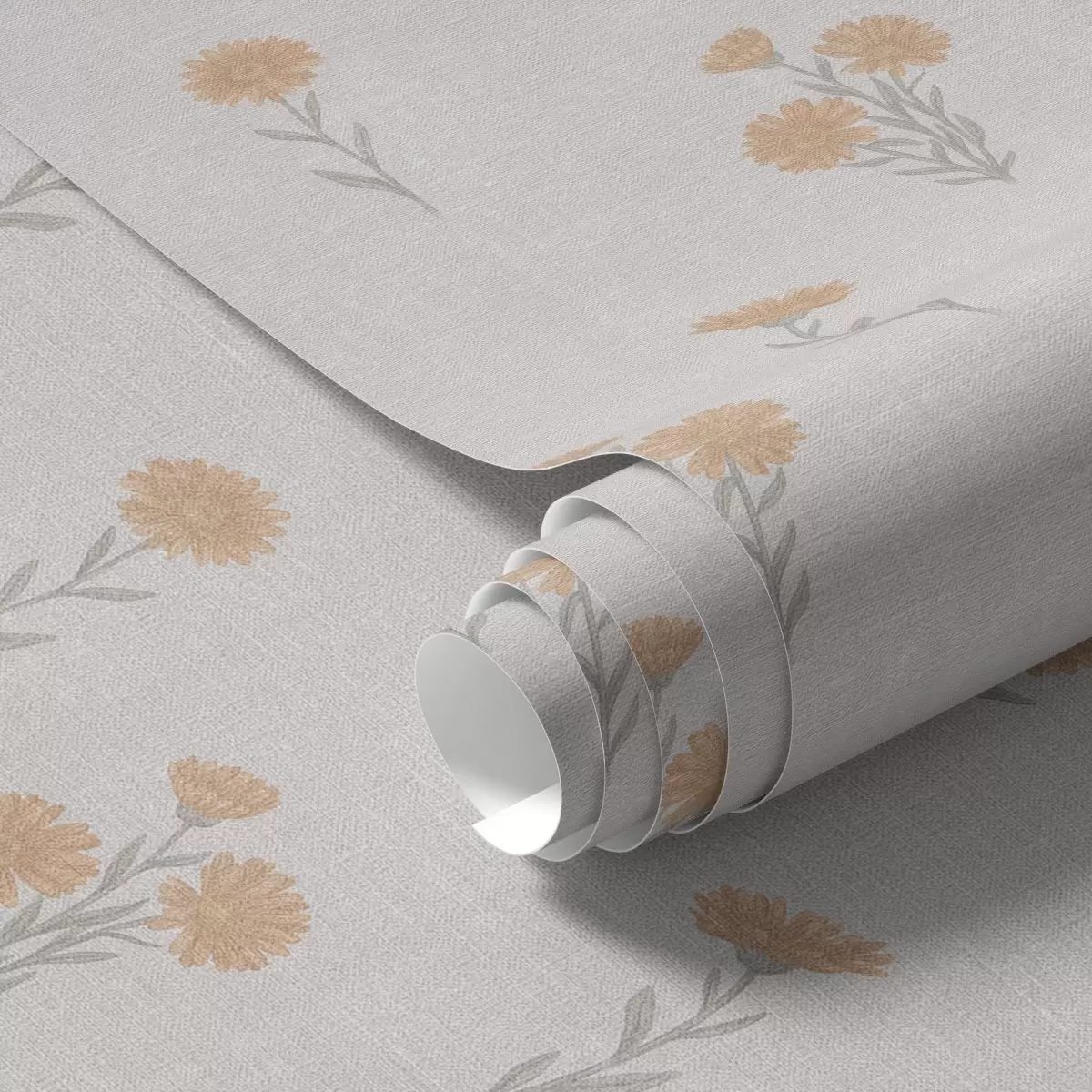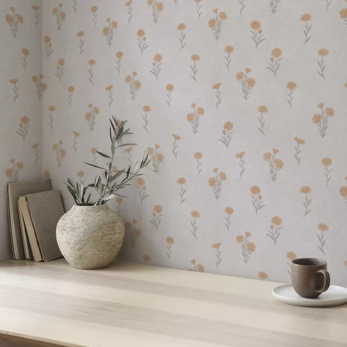 Behang Kleine oranje bloemen op een lichtgrijze achtergrond Nr. a00486