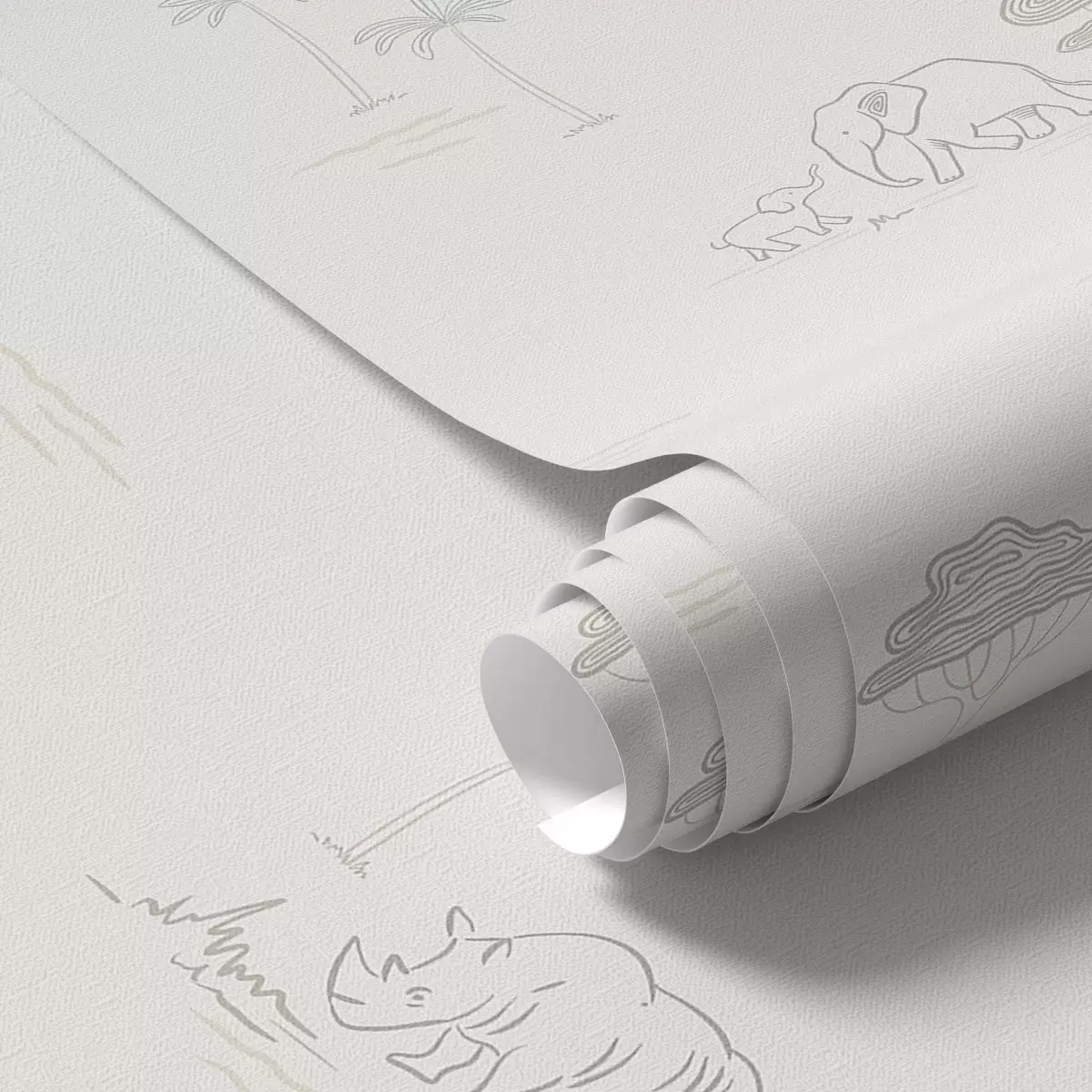 Behang Minimalistische safari: olifanten, neushoorns, luipaarden en palmbomen Nr. a00492