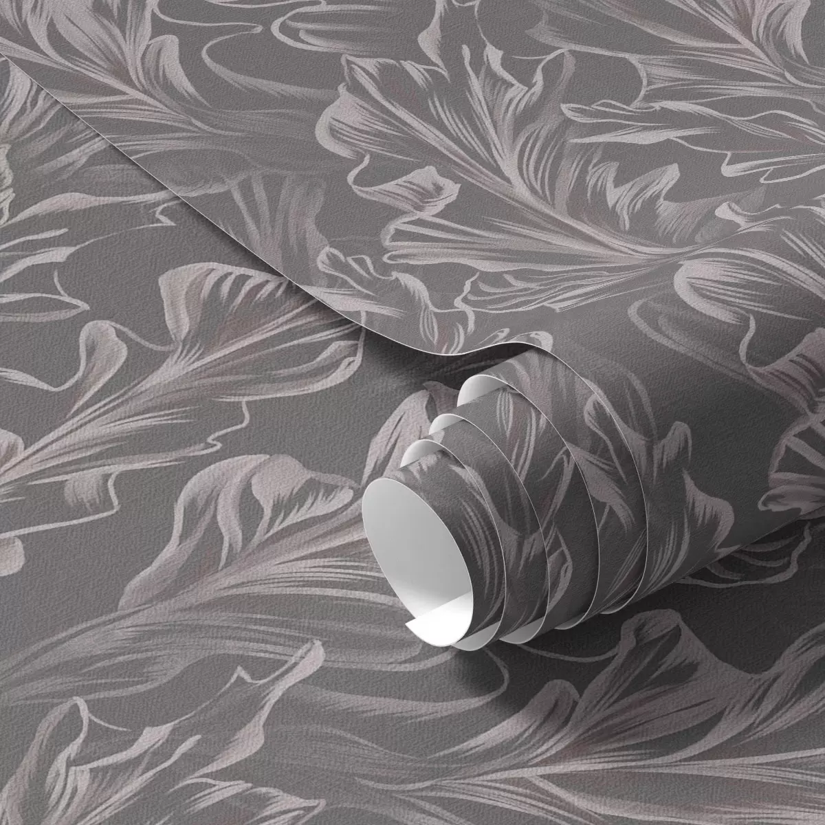 Behang Golvende bladeren op een grafietkleurige achtergrond, hoog contrast Nr. a00495v1