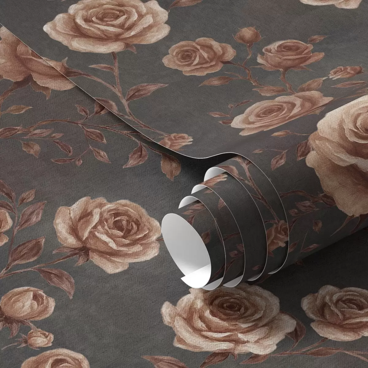 Behang Vintage rozen op een grafietkleurige achtergrond, terracotta kleurenpalet Nr. a00497v1