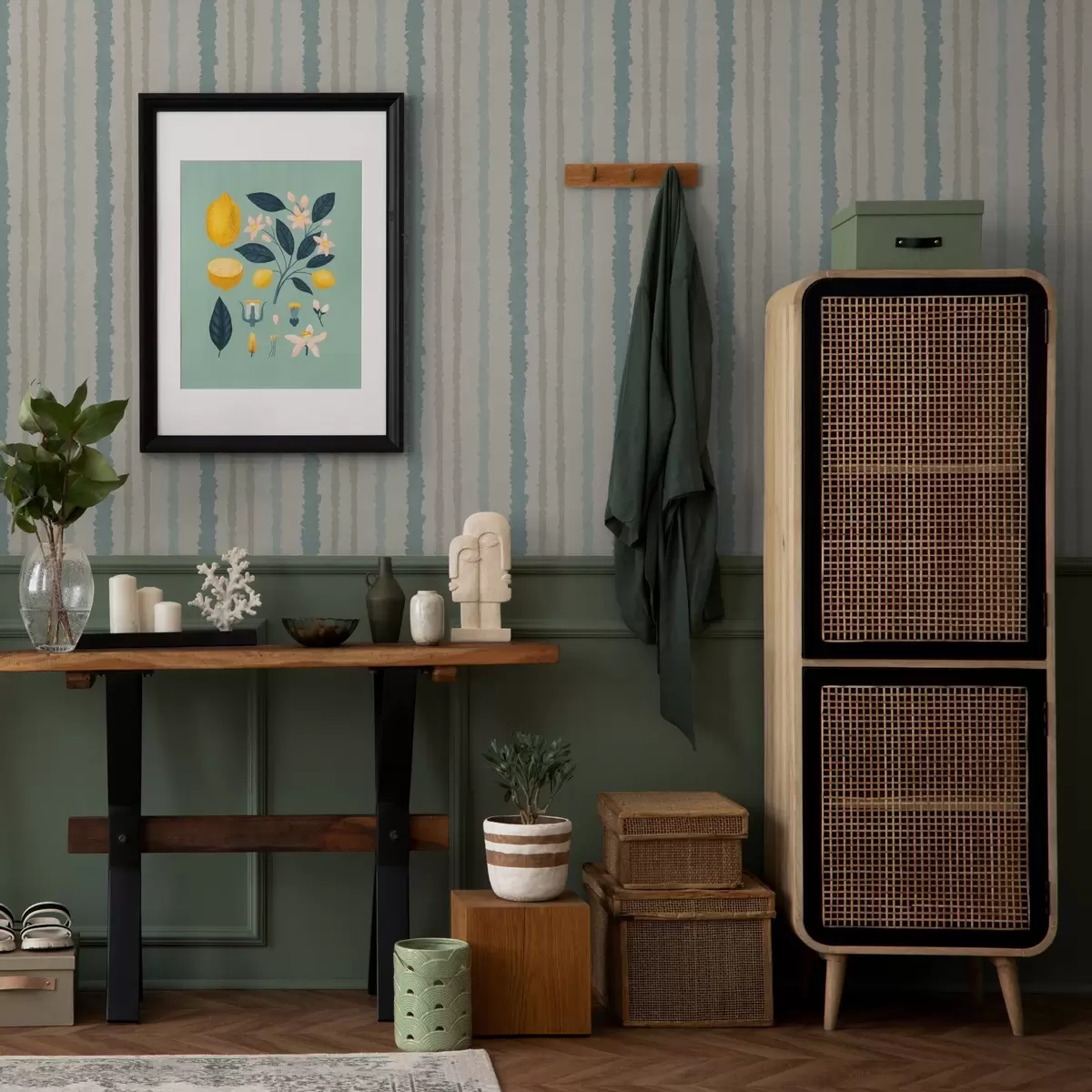 Behang Turquoise-beige strepen met handgeschilderd effect Nr. a00510v1
