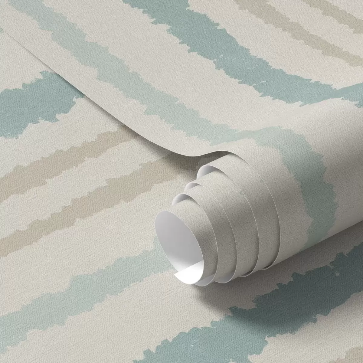 Behang Turquoise-beige strepen met handgeschilderd effect Nr. a00510v1