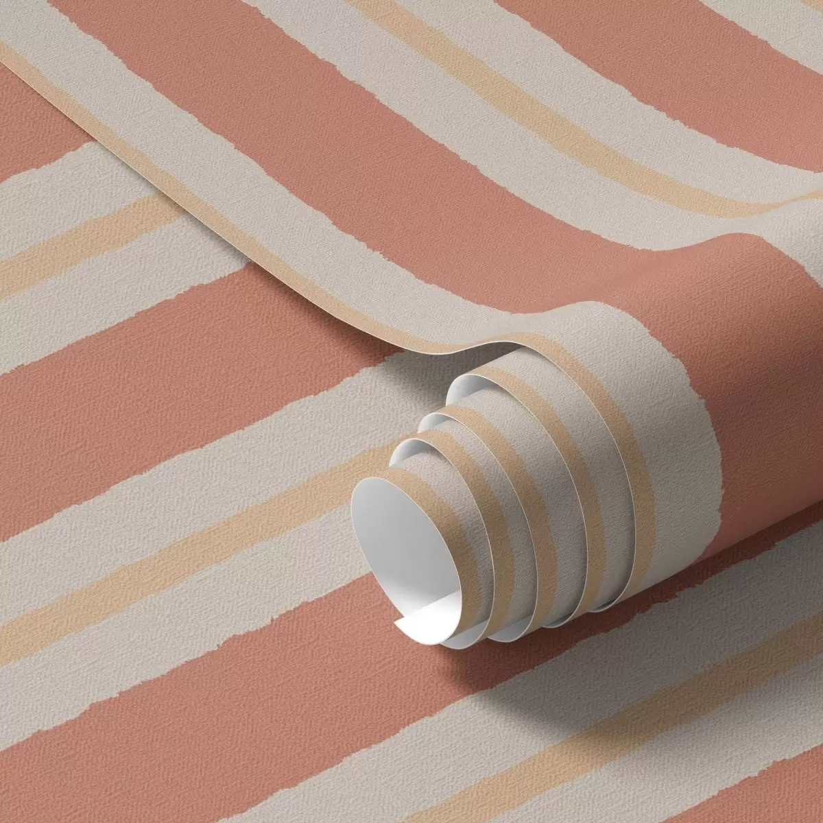 Behang Heldere terracotta strepen met beige accenten Nr. a00515