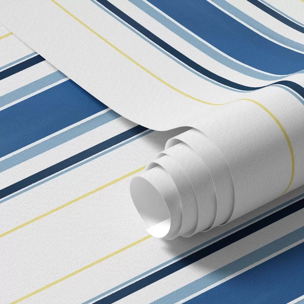 Behang Brede blauwe strepen met dunne gele lijnen Nr. a00522