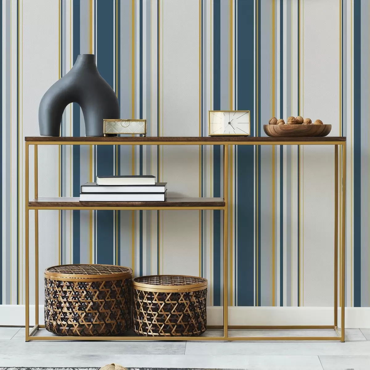 Behang Dicht patroon van blauwe en gele verticale strepen Nr. a00524