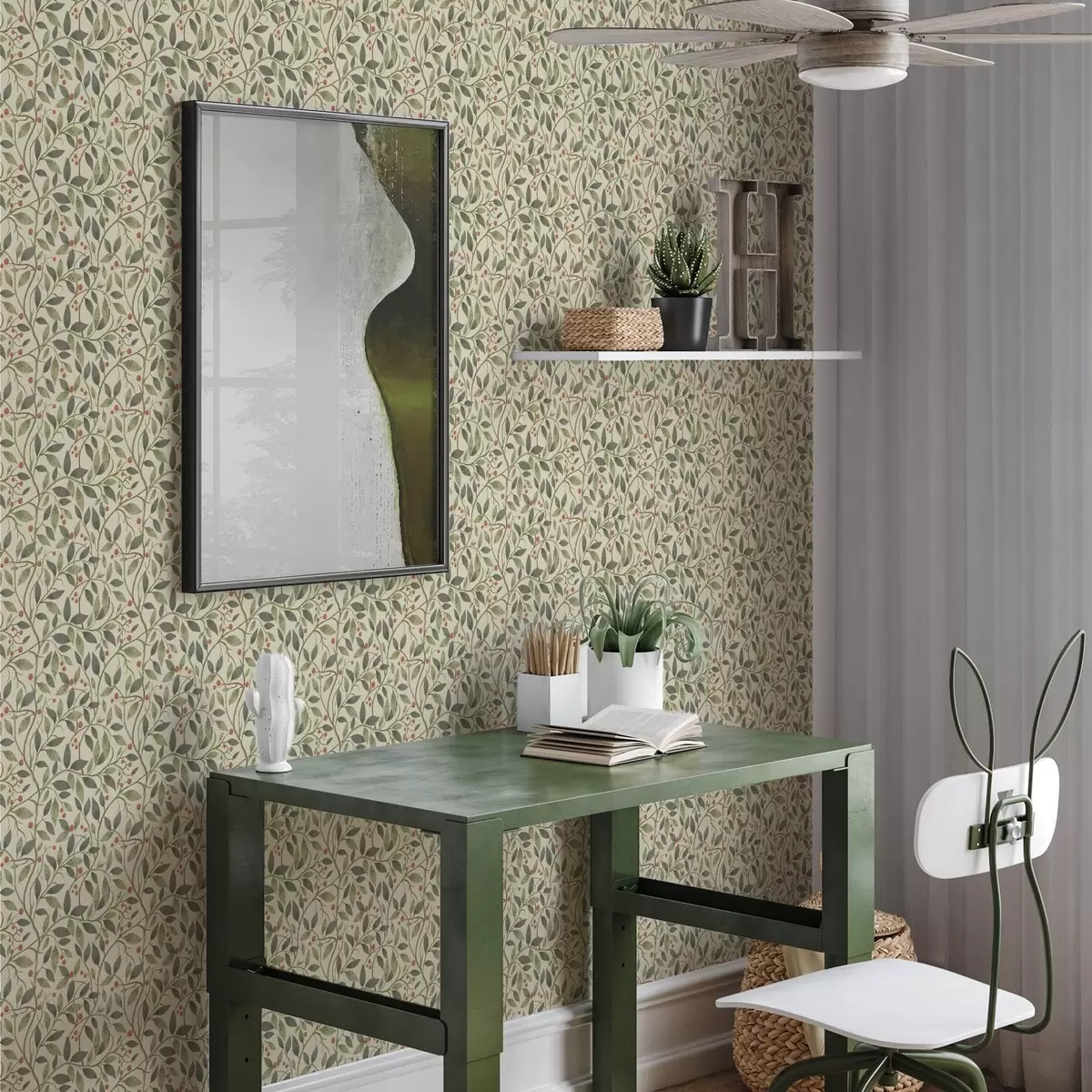 Behang Olijftakken met bessen op een warme, lichte achtergrond Nr. a00573