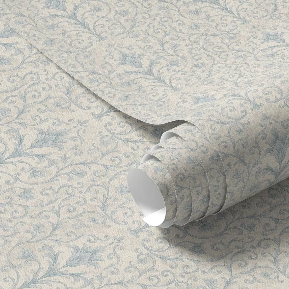 Behang Blauw damast met krullen op een crèmekleurige achtergrond Nr. a00578