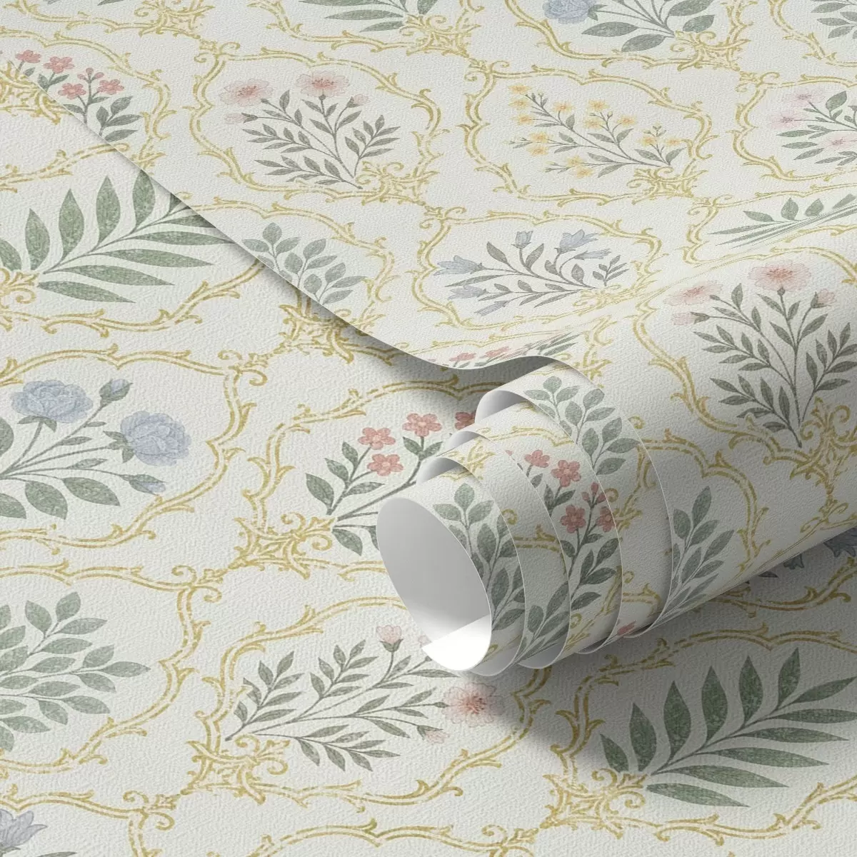 Behang Botanische medaillons in een raster, pasteltinten Nr. a00579