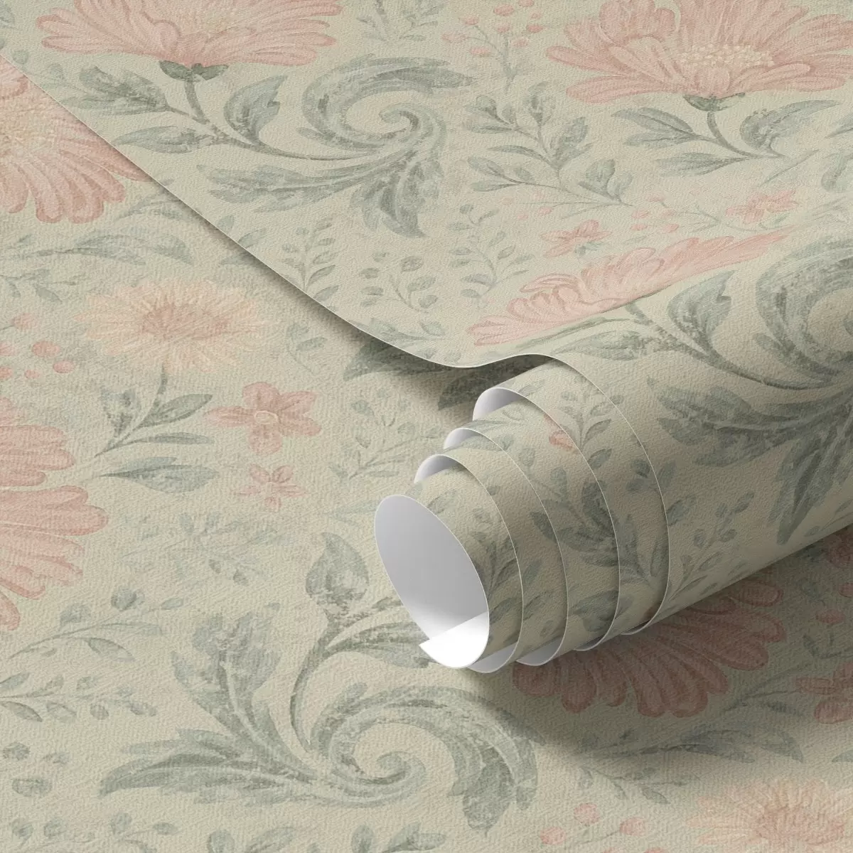Behang Vintage grote perzikbloemen met salieblaadjes Nr. a00580