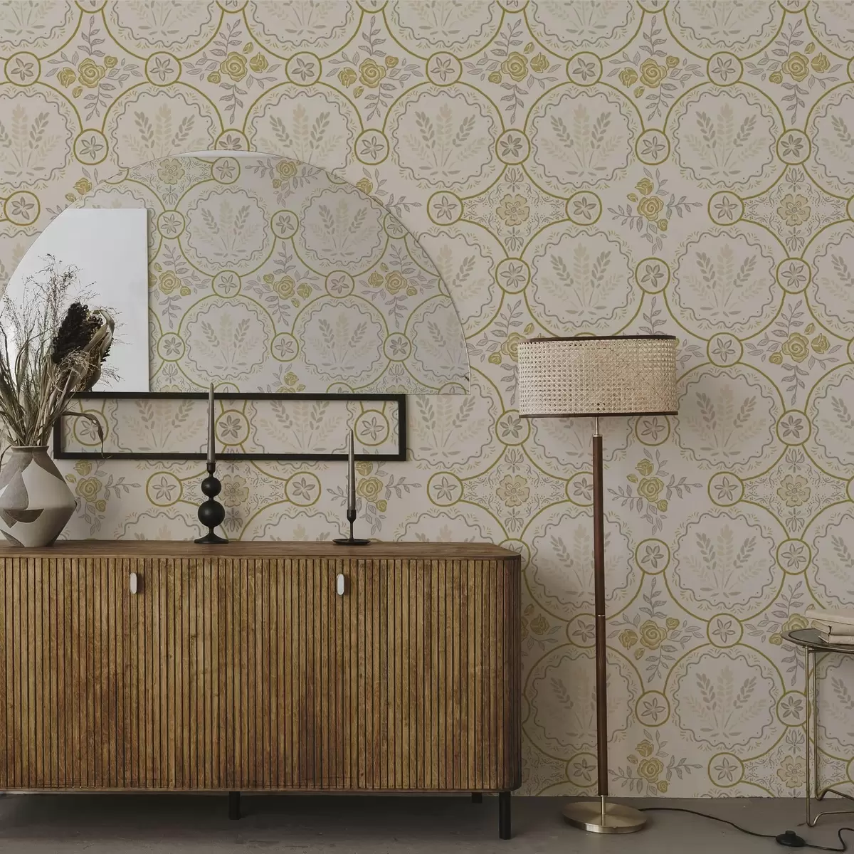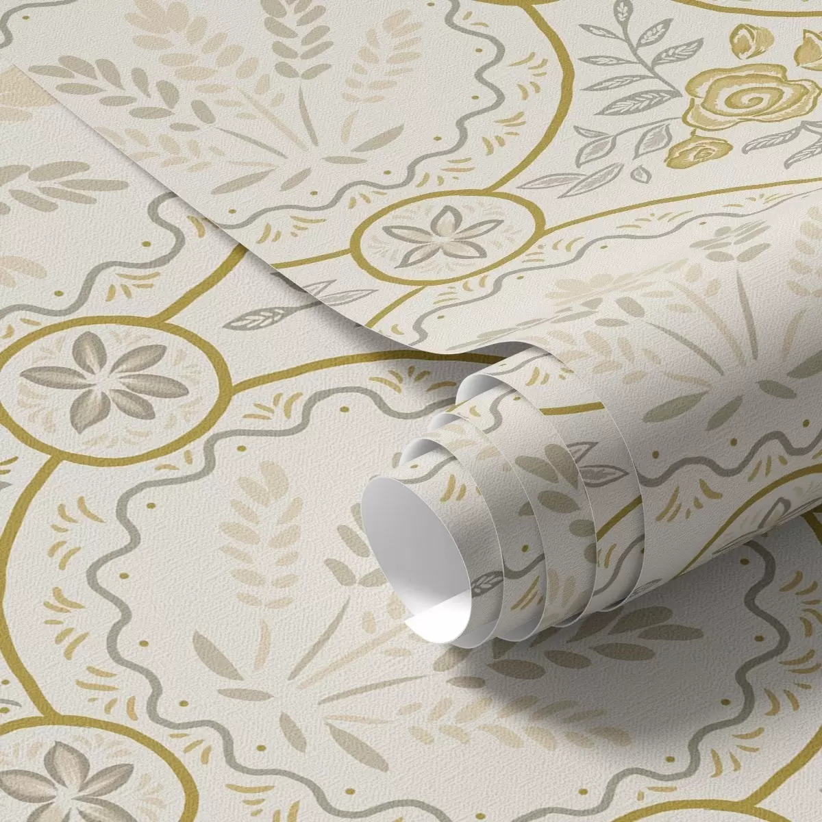 Behang Retro ornament met tarwe en rozen in goud Nr. a00595