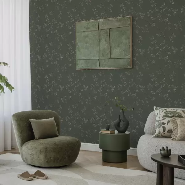 Behang Delicate bladrijke takken op een donkergroene achtergrond Nr. a00597