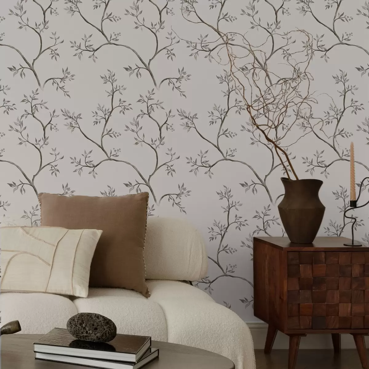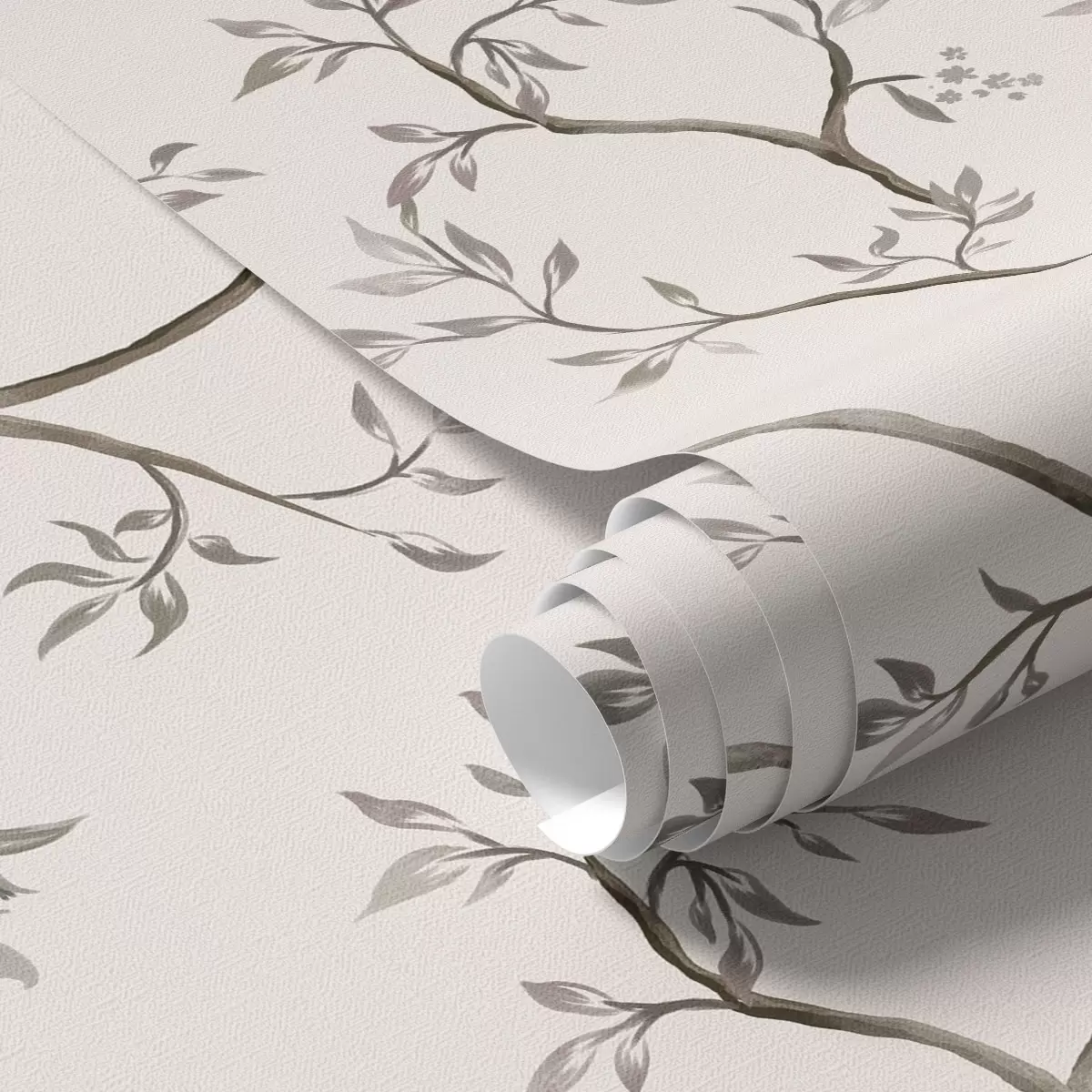 Behang Delicate bladrijke takken op een warme crèmekleurige achtergrond Nr. a00597v1