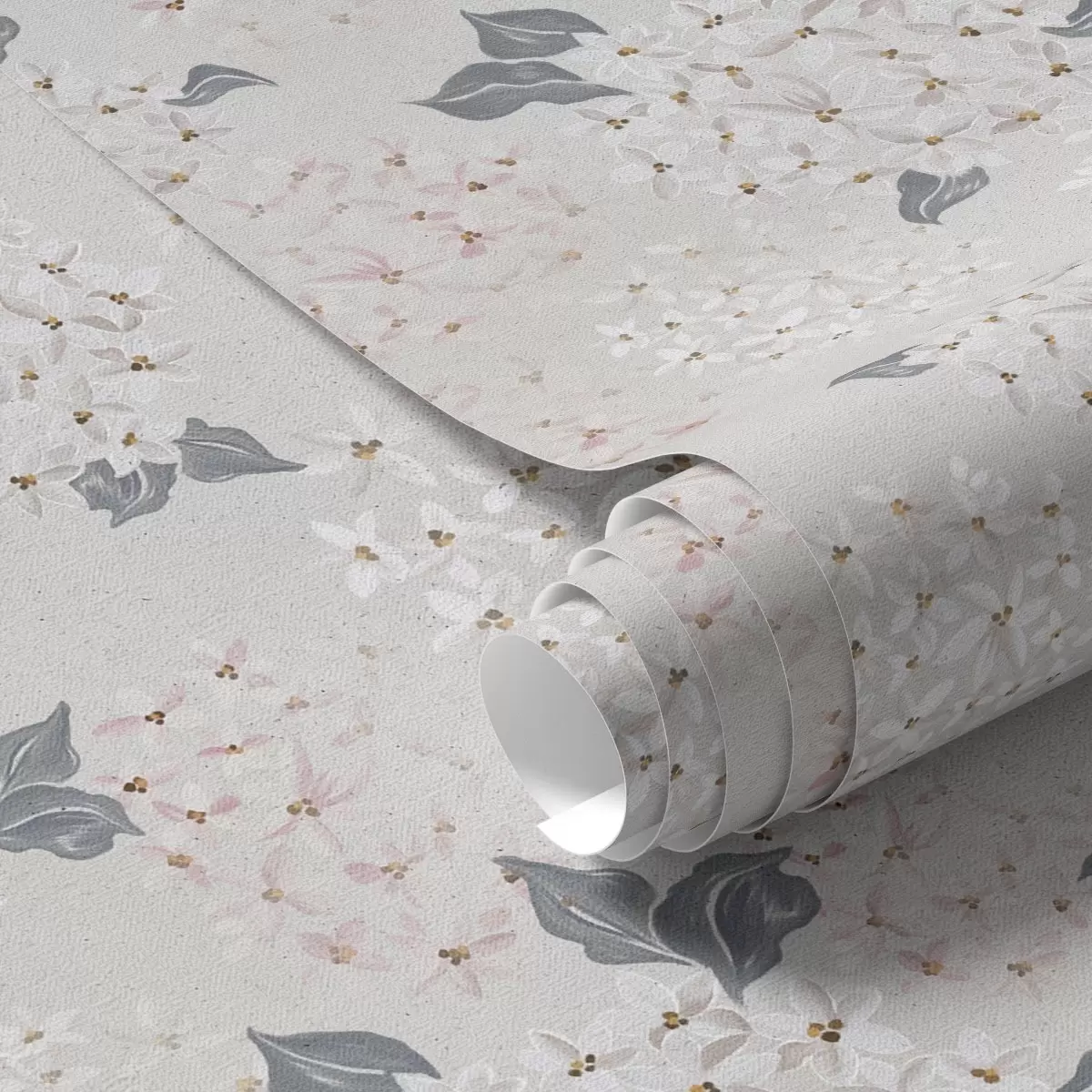 Behang Luchtige bloesems op een lichte achtergrond, zachte roze-grijze tinten Nr. a00600