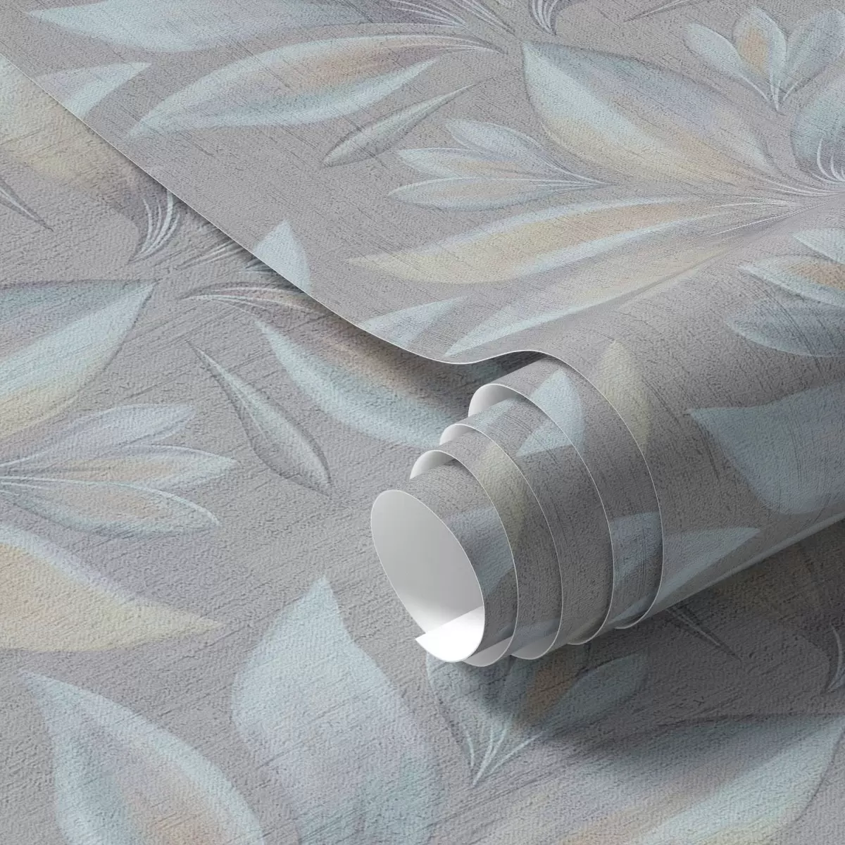 Behang Grote gestileerde bladeren in een blauw-zandkleurig palet op grijs Nr. a00601