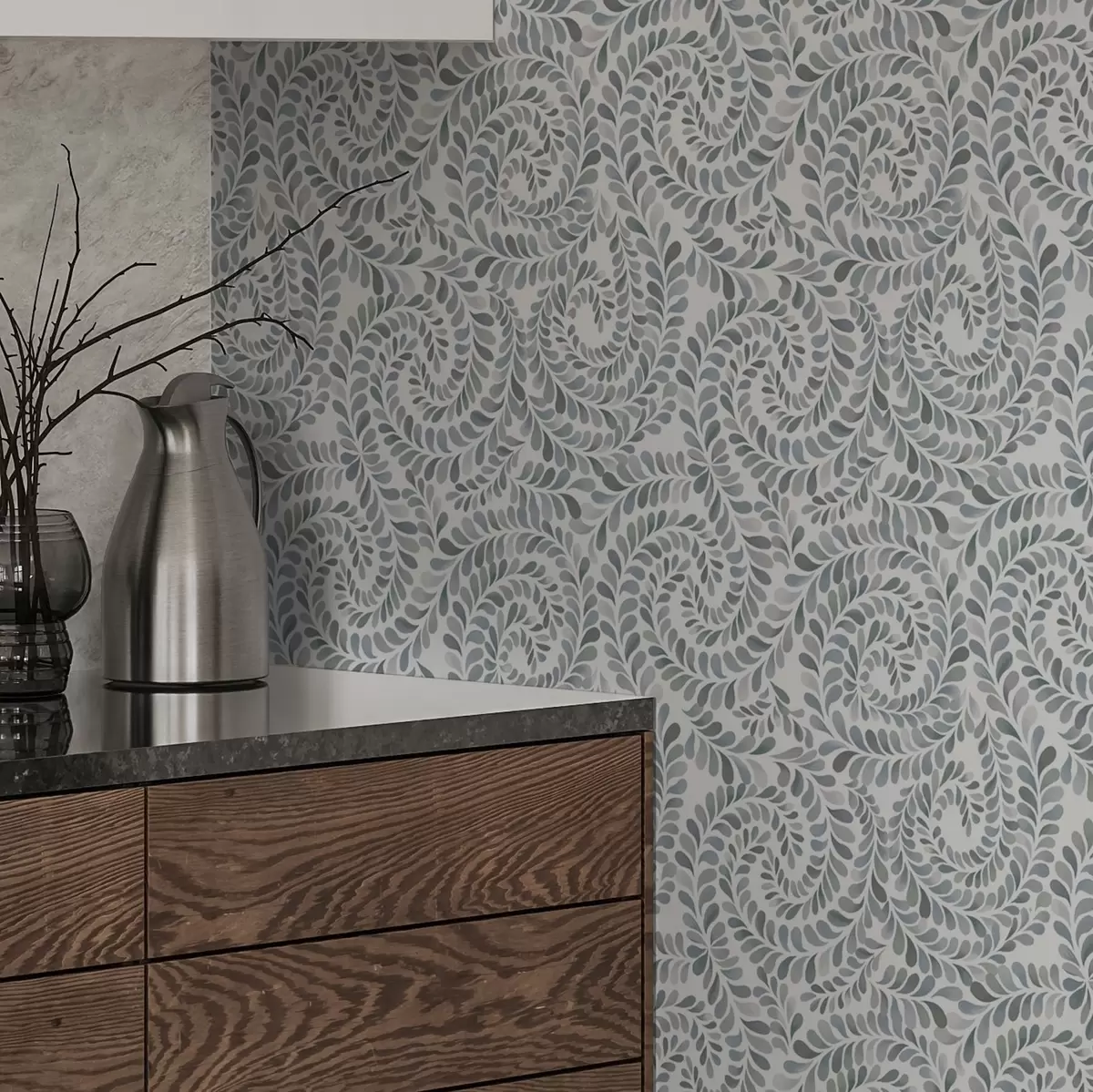 Behang Bladachtige spiralen in koele grijsblauwe tinten Nr. a00602v1