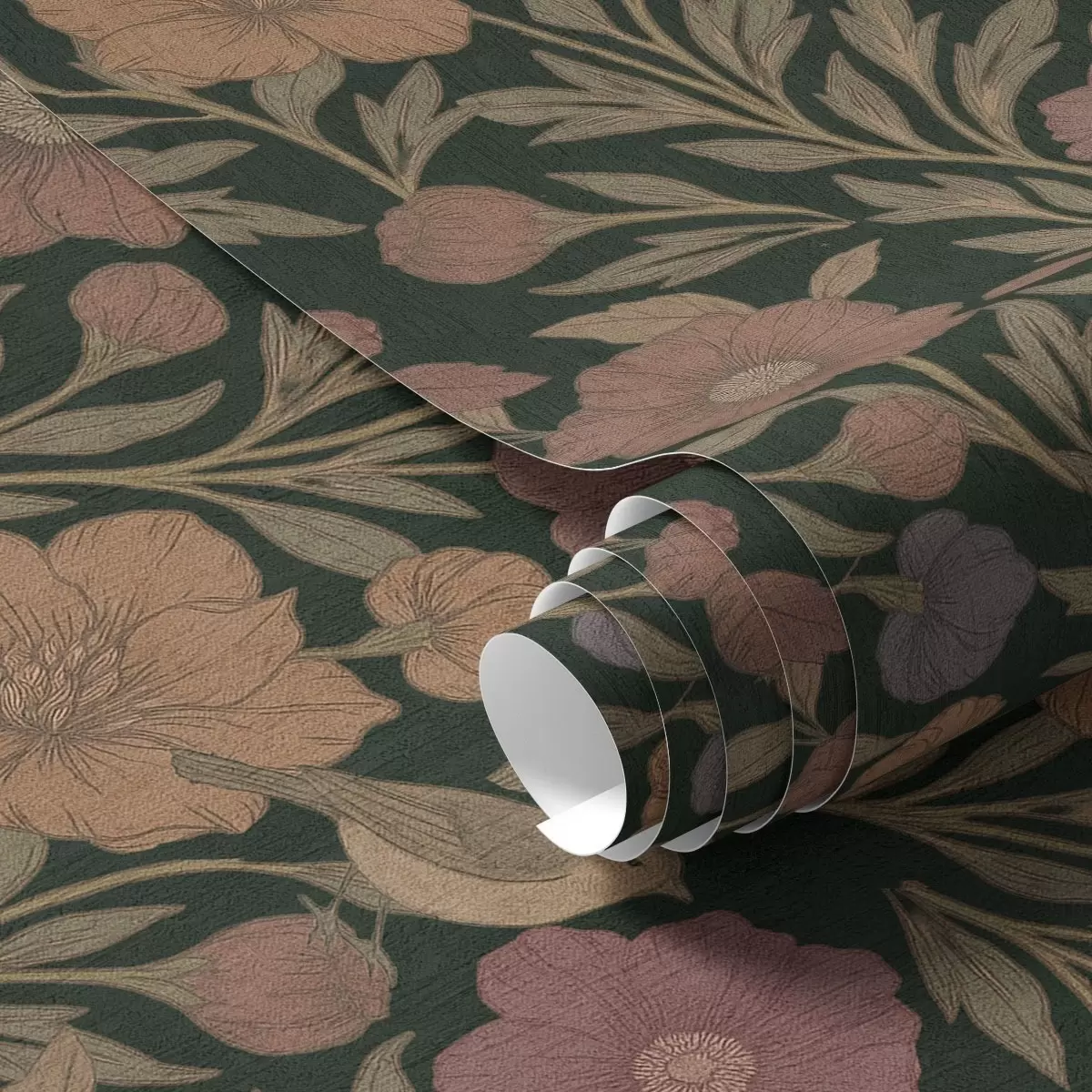 Behang Herfstbloemen en vogels op een diep smaragdgroene achtergrond Nr. a00605v1
