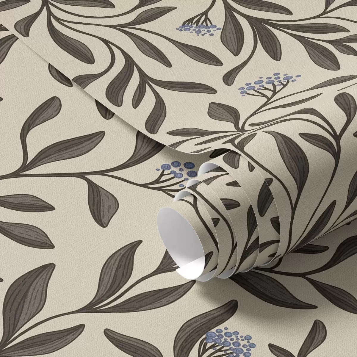 Behang Chocoladetakken met blauwe bessen op een warme achtergrond Nr. a00615